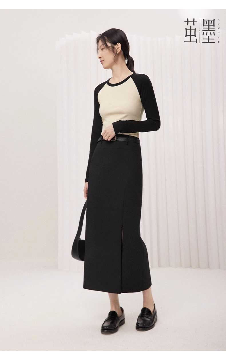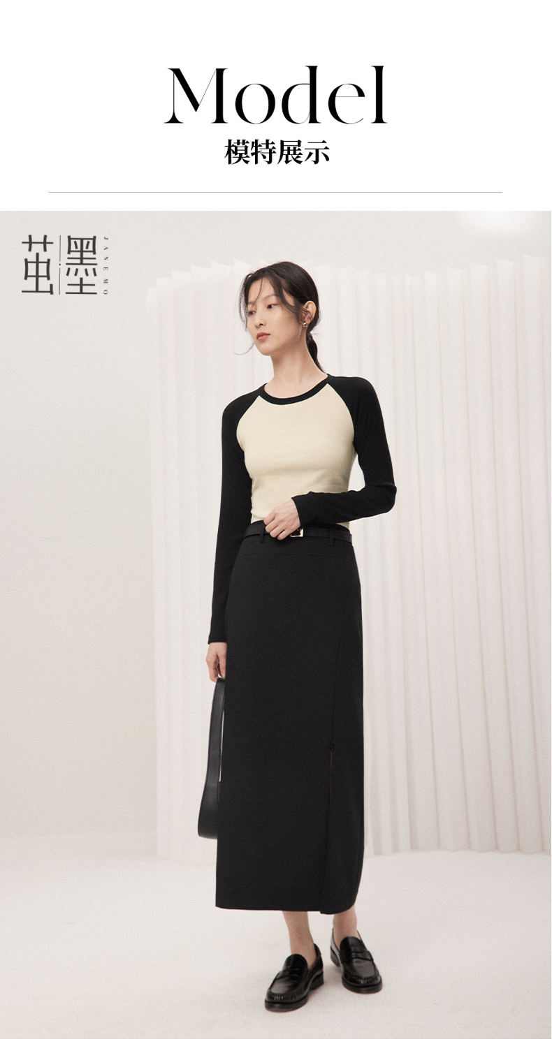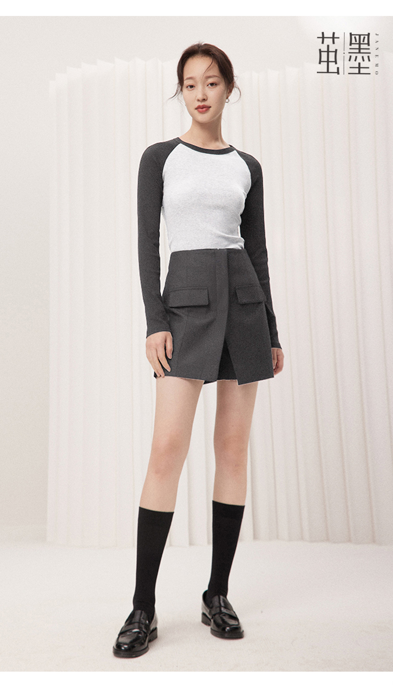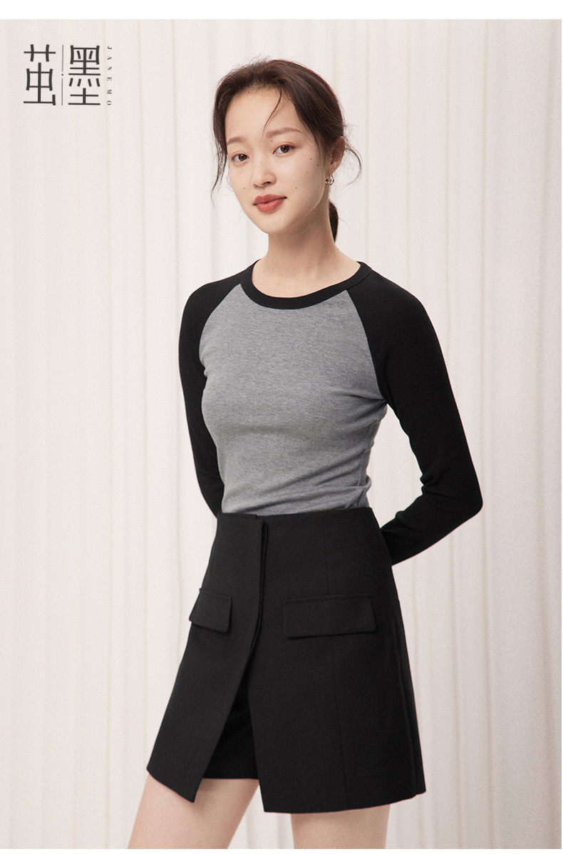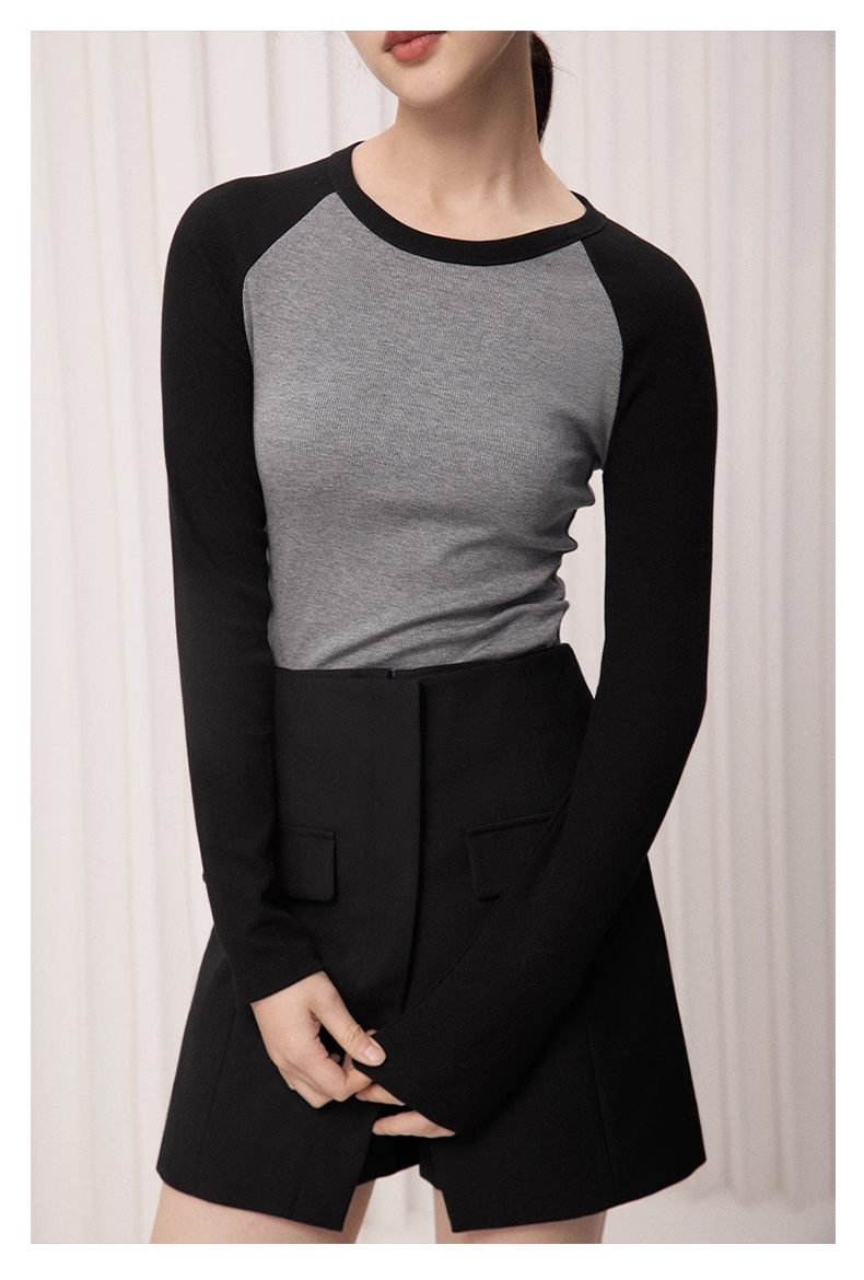 优选丨【美式复古风】茧墨 撞色插肩袖螺纹长袖上衣 舒适亲肤 吸汗透气 显高显瘦 经典百搭