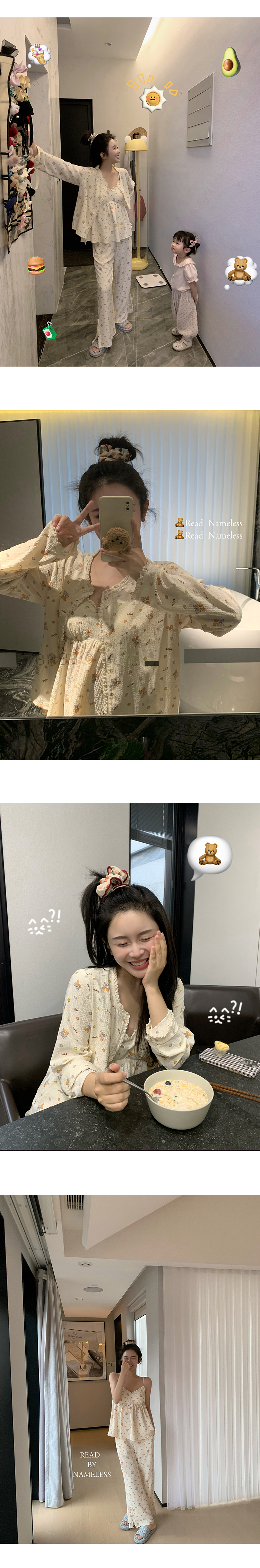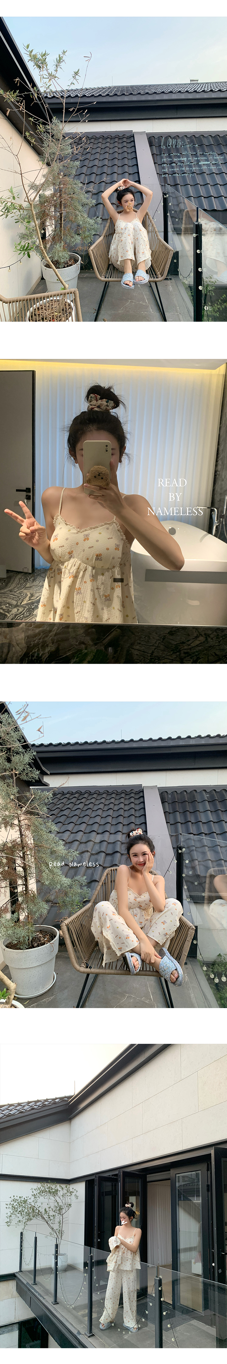 Read Nameless /带胸垫的睡衣三件套(吊带+长裤+开衫)