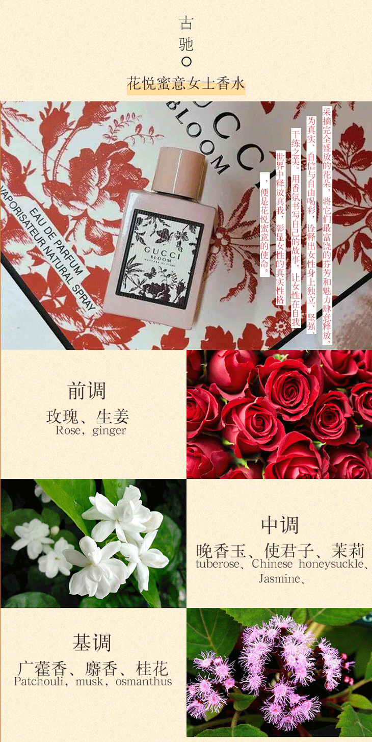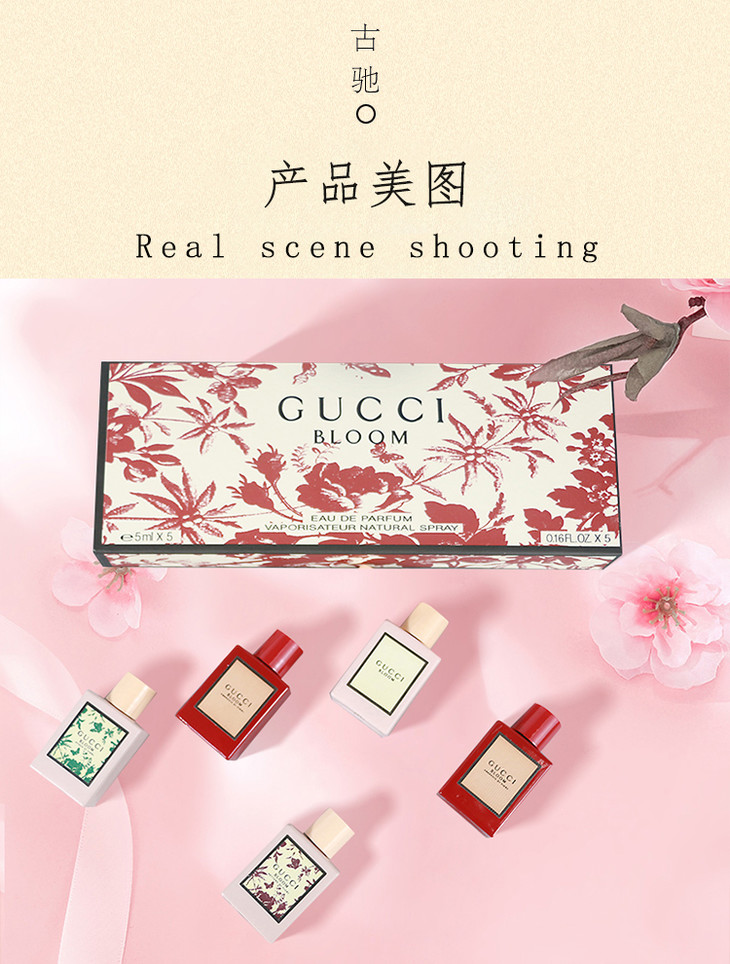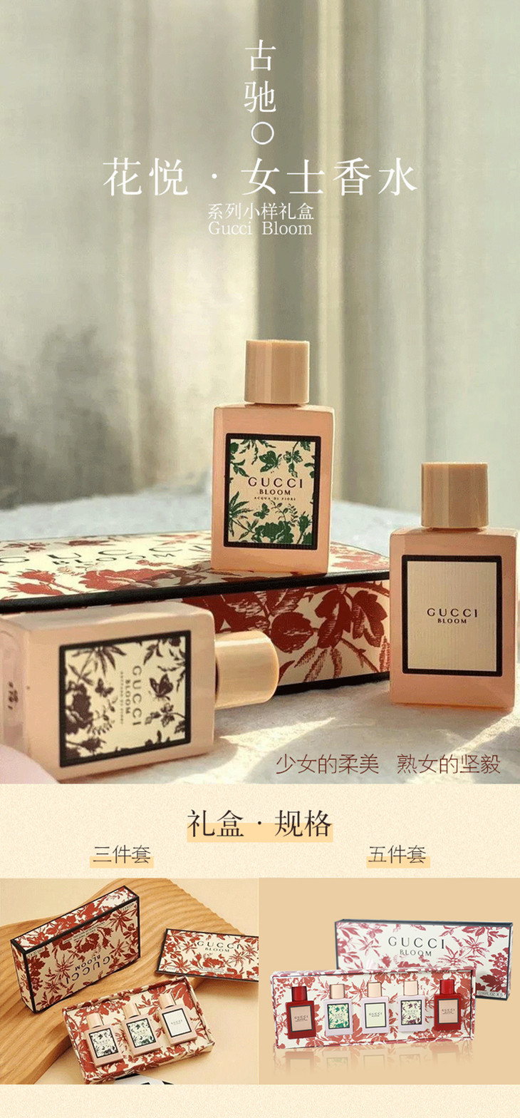 3.8女王节【全球购】古驰GUCCI BLOOM花悦女士香水礼盒 Q香5ml 3件套/ 5件套香水礼盒 持久香水淡香EDP