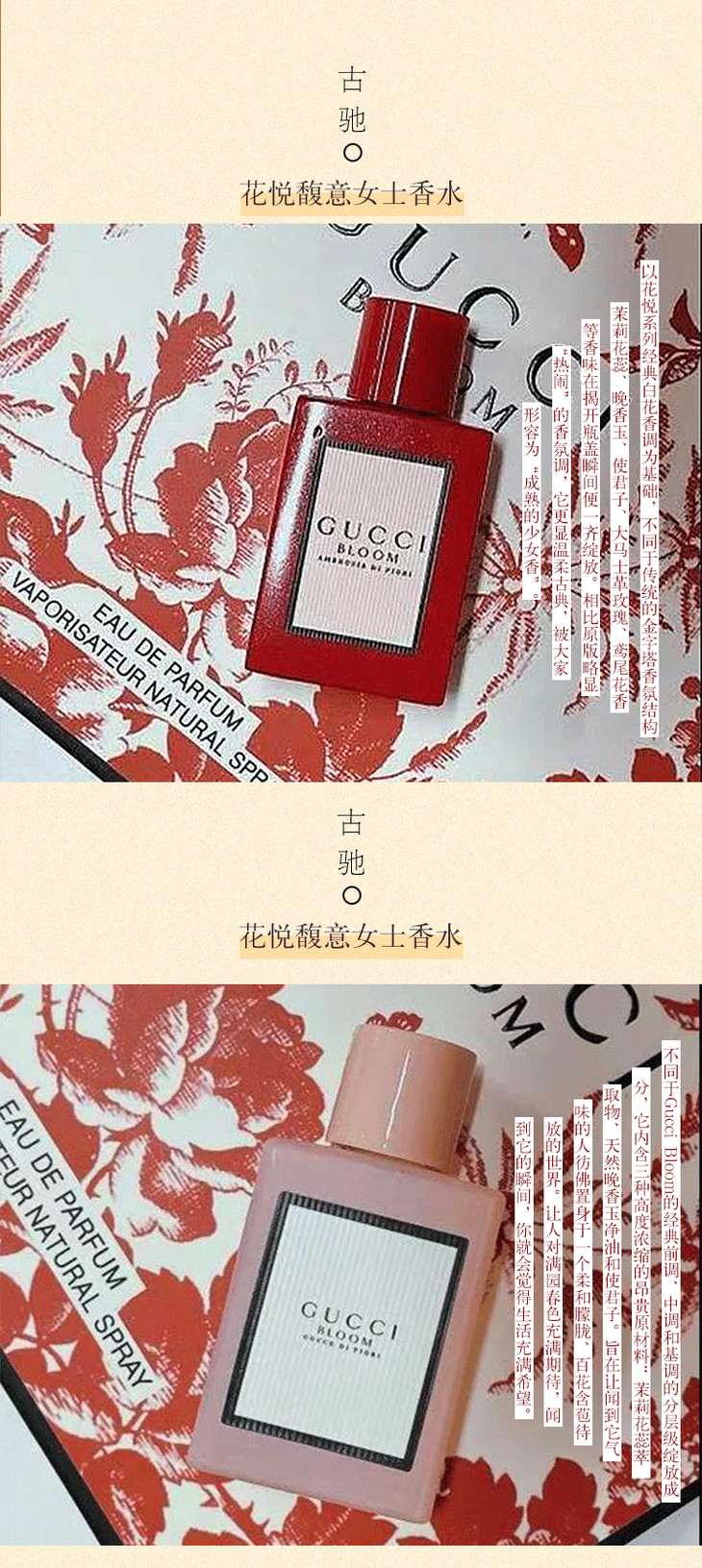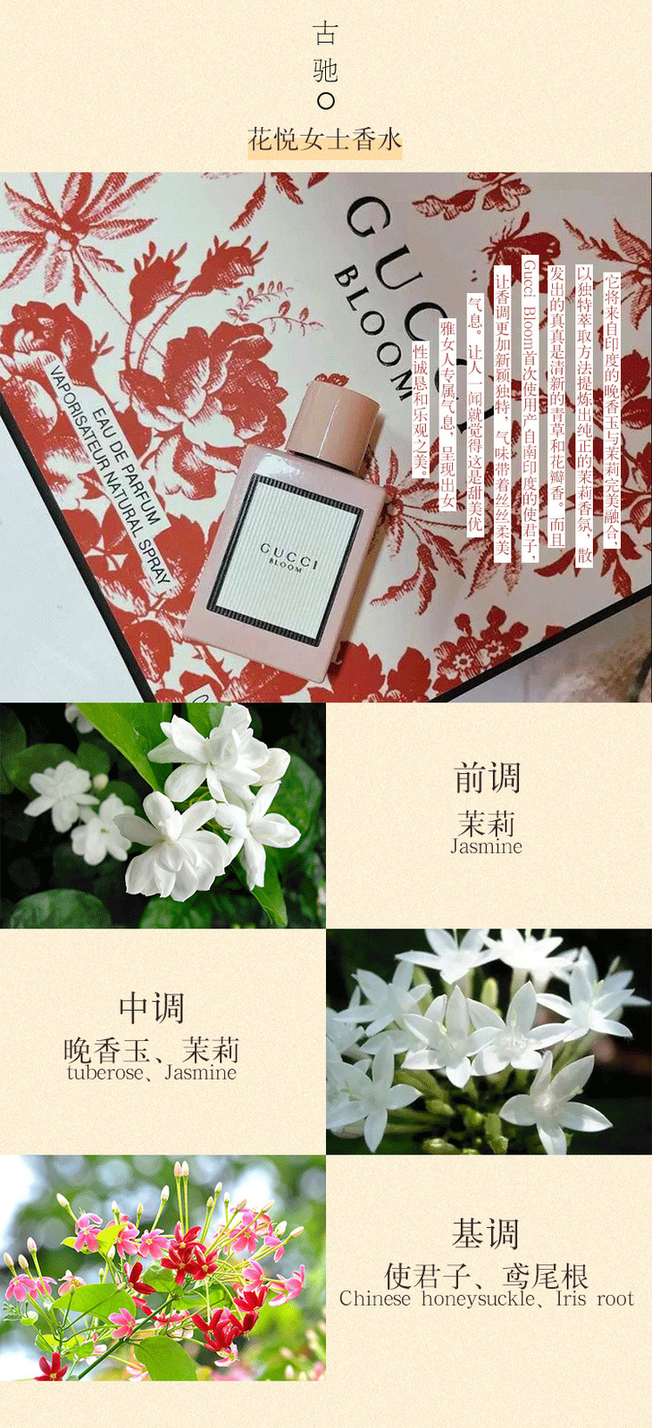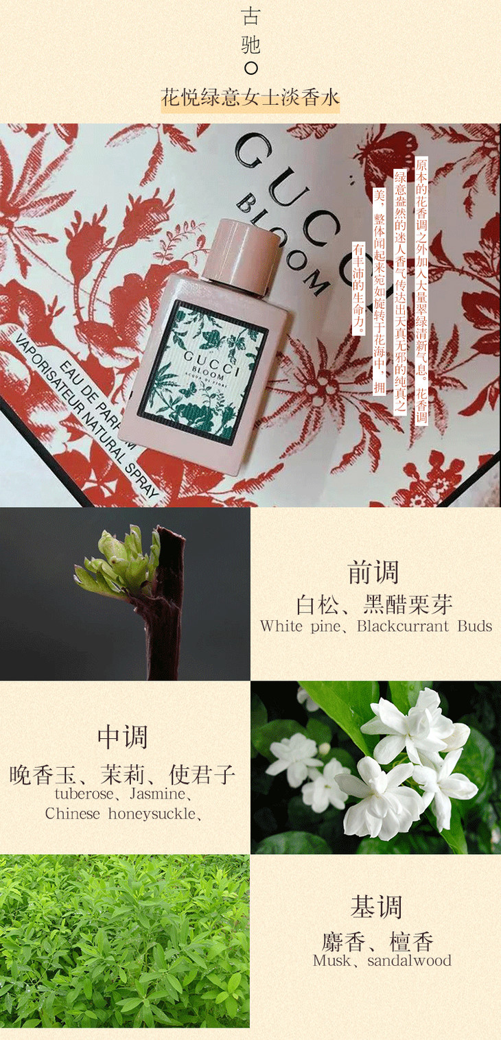 3.8女王节【全球购】古驰GUCCI BLOOM花悦女士香水礼盒 Q香5ml 3件套/ 5件套香水礼盒 持久香水淡香EDP