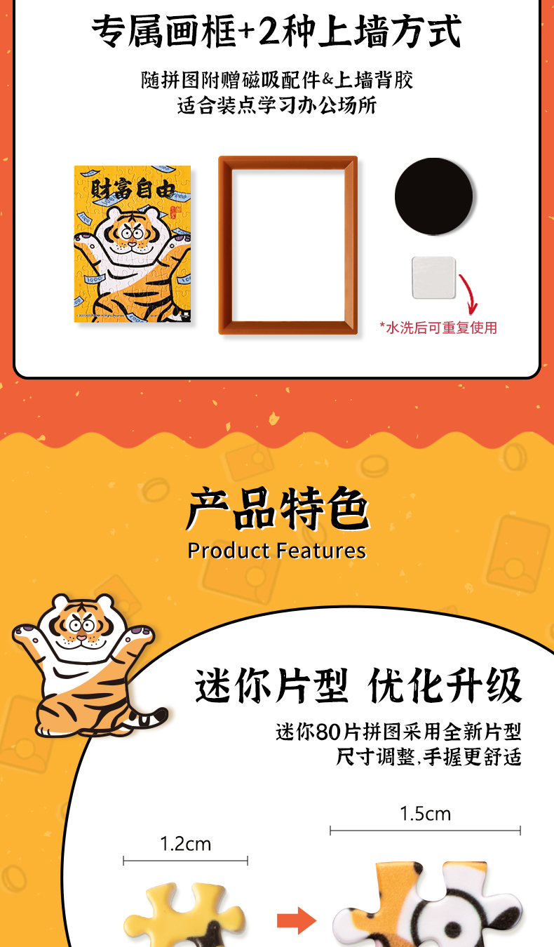 80片迷你拼图Q1075 我不是胖虎-日常系列-財富自由(搭配画框配背胶圆形磁铁 无画架)