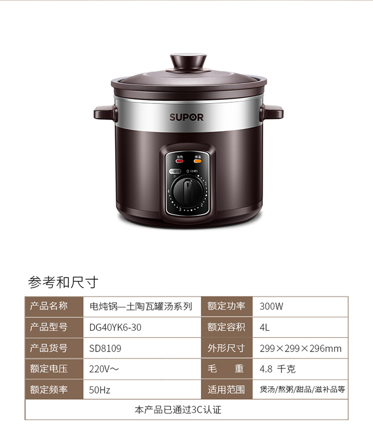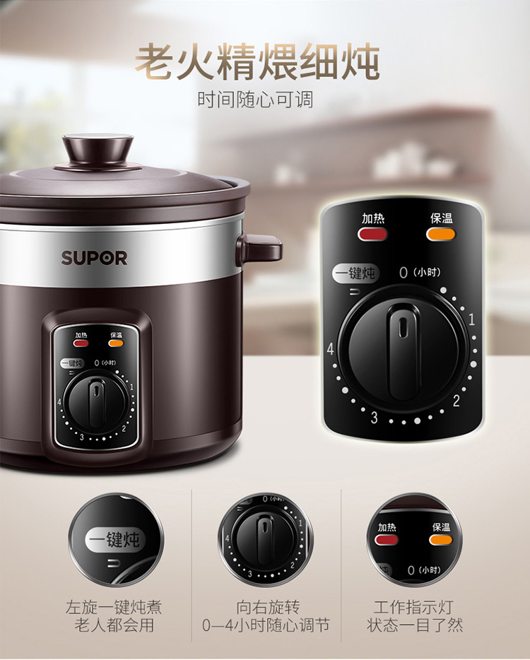 SUPOR/苏泊尔 DG40YK6-30电炖锅煮粥煲砂锅汤养生紫陶瓷 正品