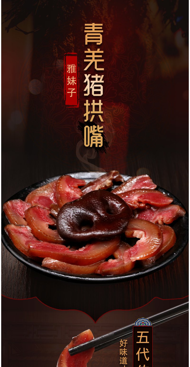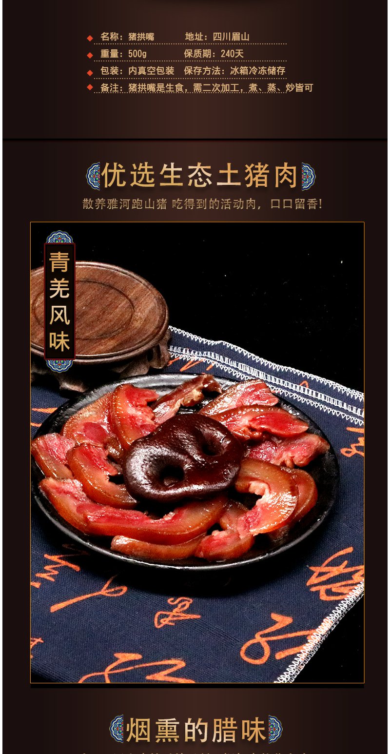 雅妹子 青羌猪拱嘴500g 猪拱嘴正宗四川特产腊猪嘴烟熏风干腊猪嘴唇猪鼻子下酒菜