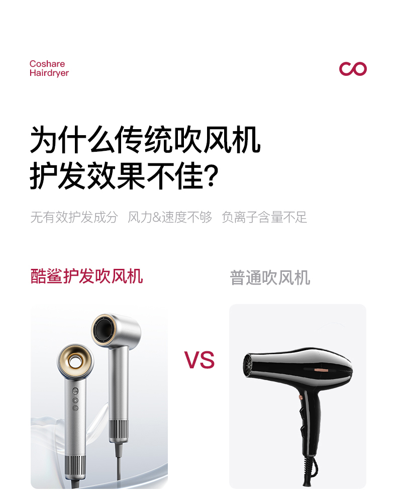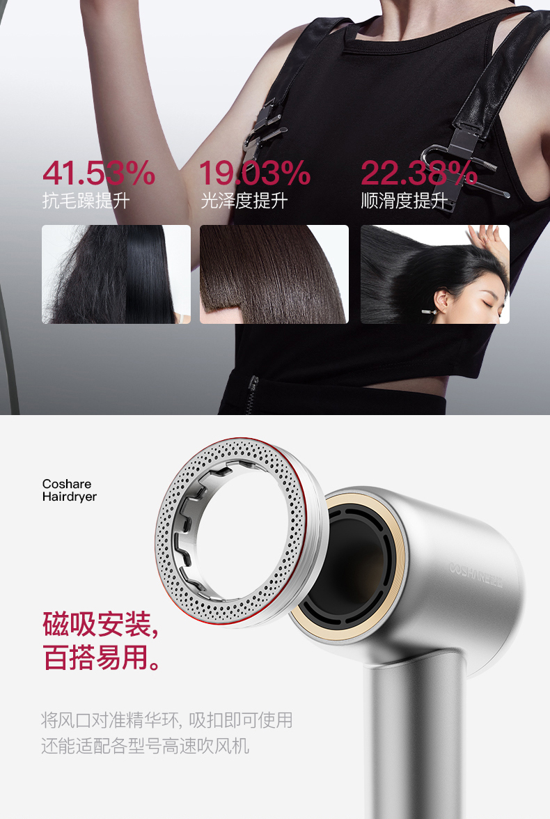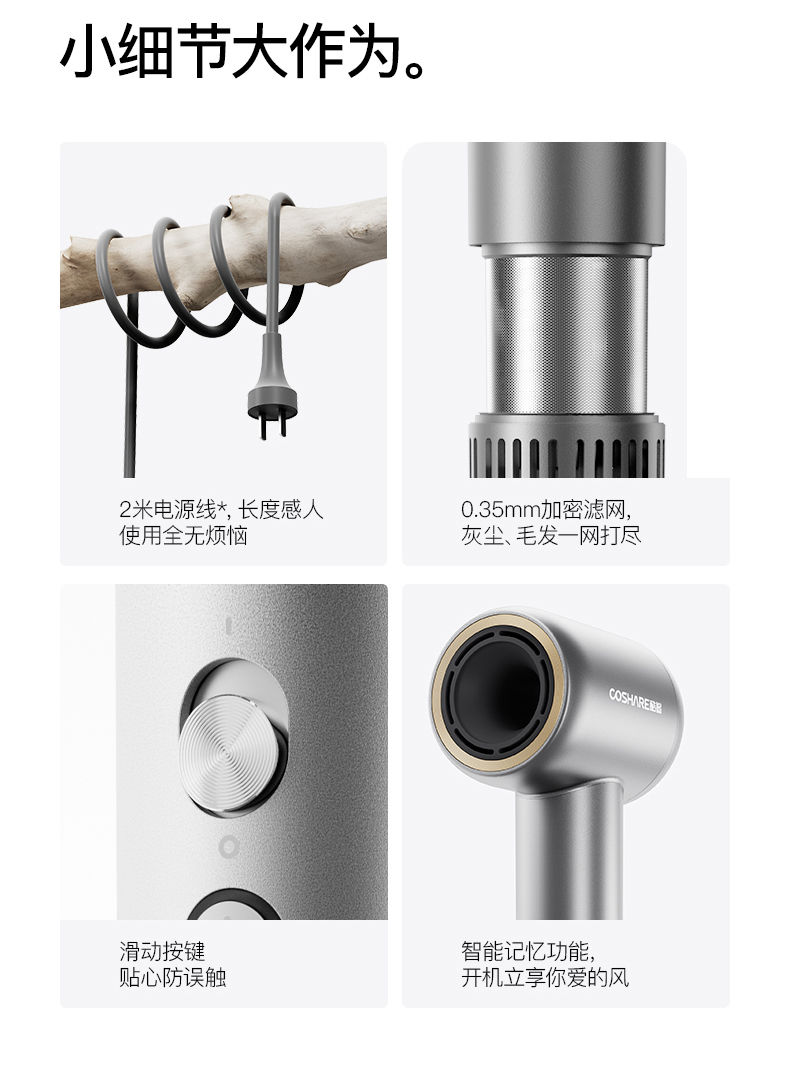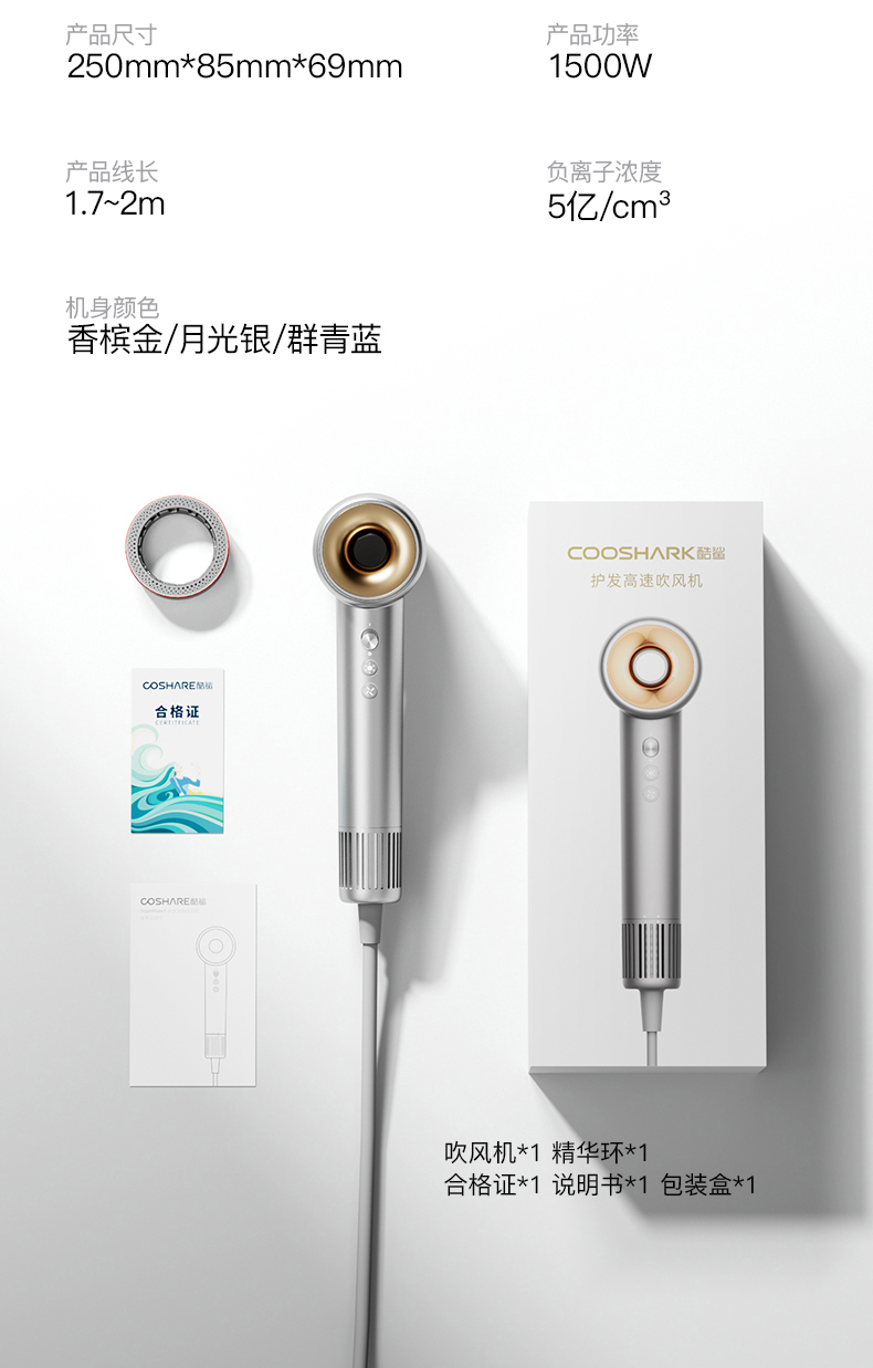 COSHARE 酷鲨护发高速吹风机HD10 速干无叶便携 大风量负离子低噪 11W转高速无刷电机 护发电吹风 节日礼物 送礼佳品