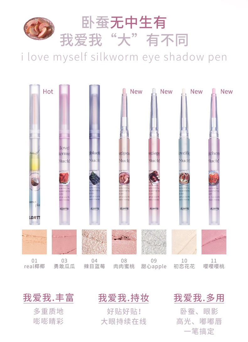FLORTTE/花洛莉亚卧蚕笔两用眼影笔阴影高光珠光提亮卧蚕笔 心选到家