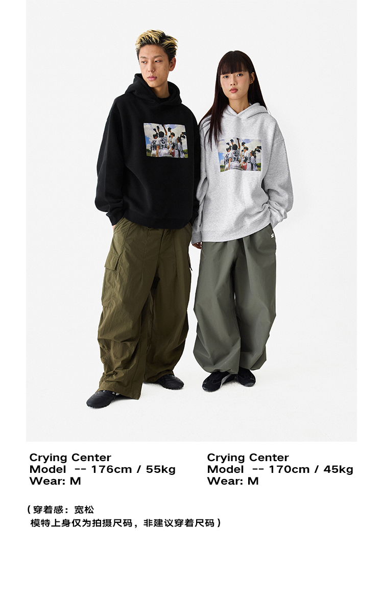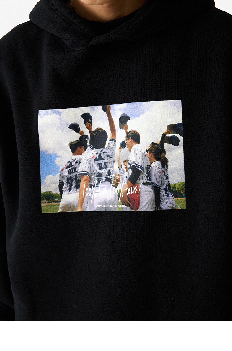 CryingCenter 棒球队合照手写字连帽加绒卫衣 哭喊中心