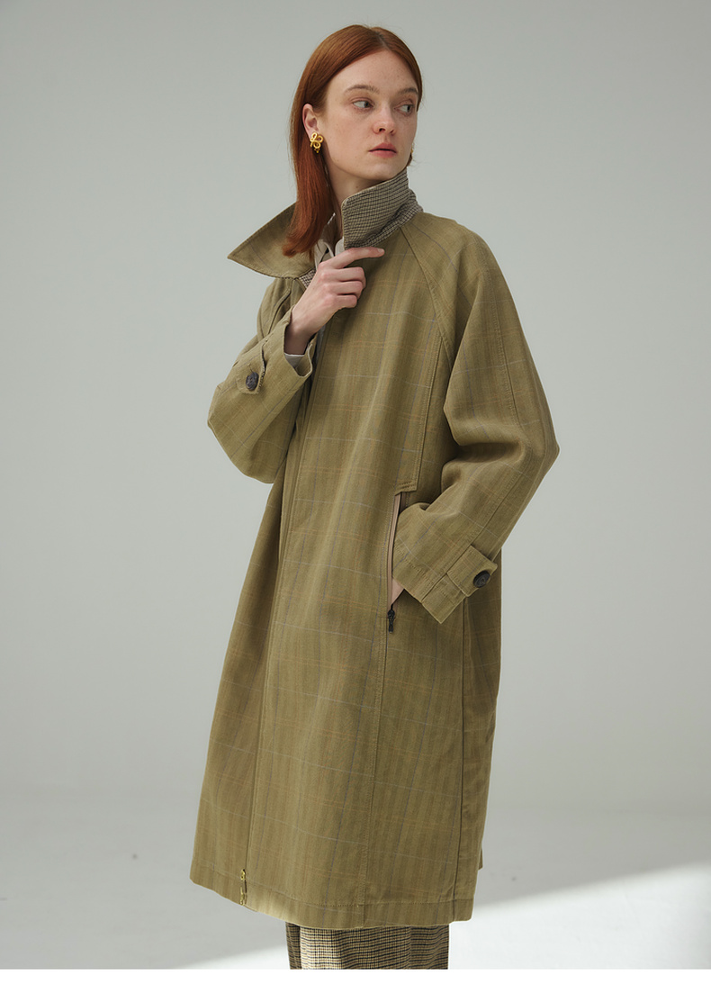 谜底大廓形长风衣女2025秋新品通勤时尚质感挺阔H型翻领253ME1051