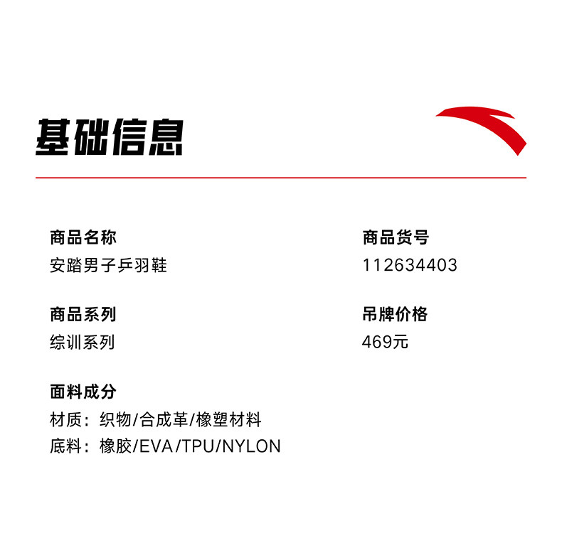 安踏瞬影001羽毛球鞋男运动鞋耐磨防滑专业训练乒羽鞋子112634403