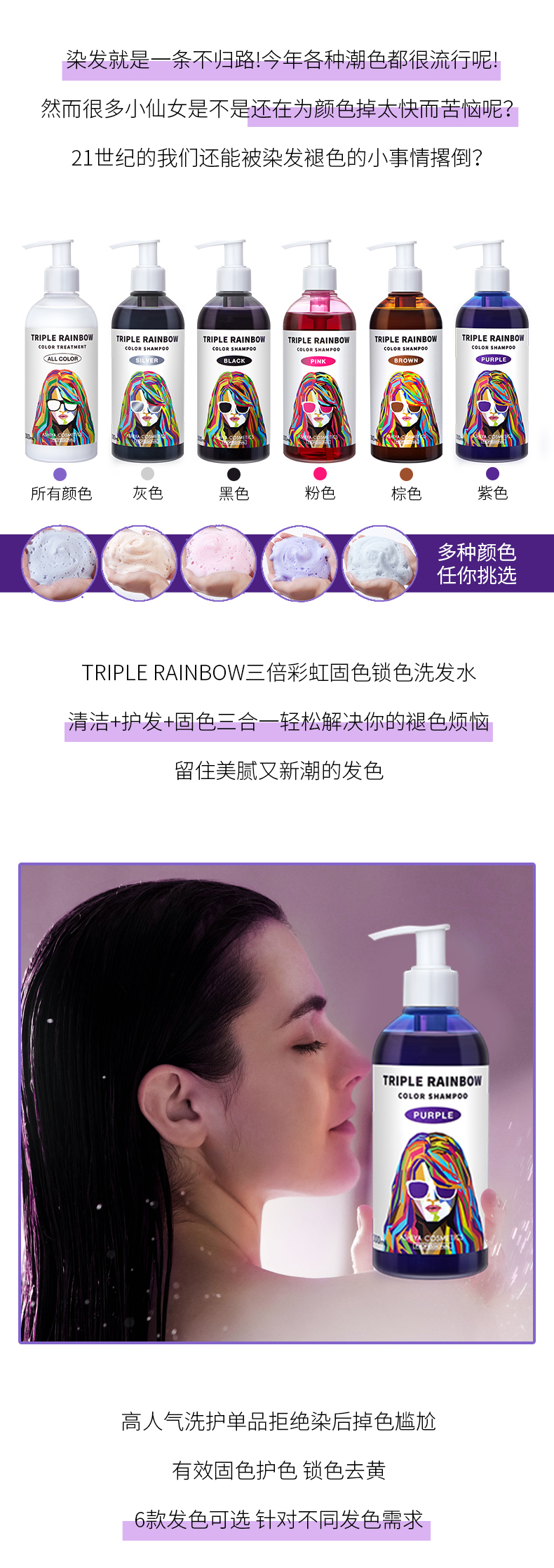【保税仓】TRIPLE RAINBOW三色彩虹洗发水 银灰色300ml
