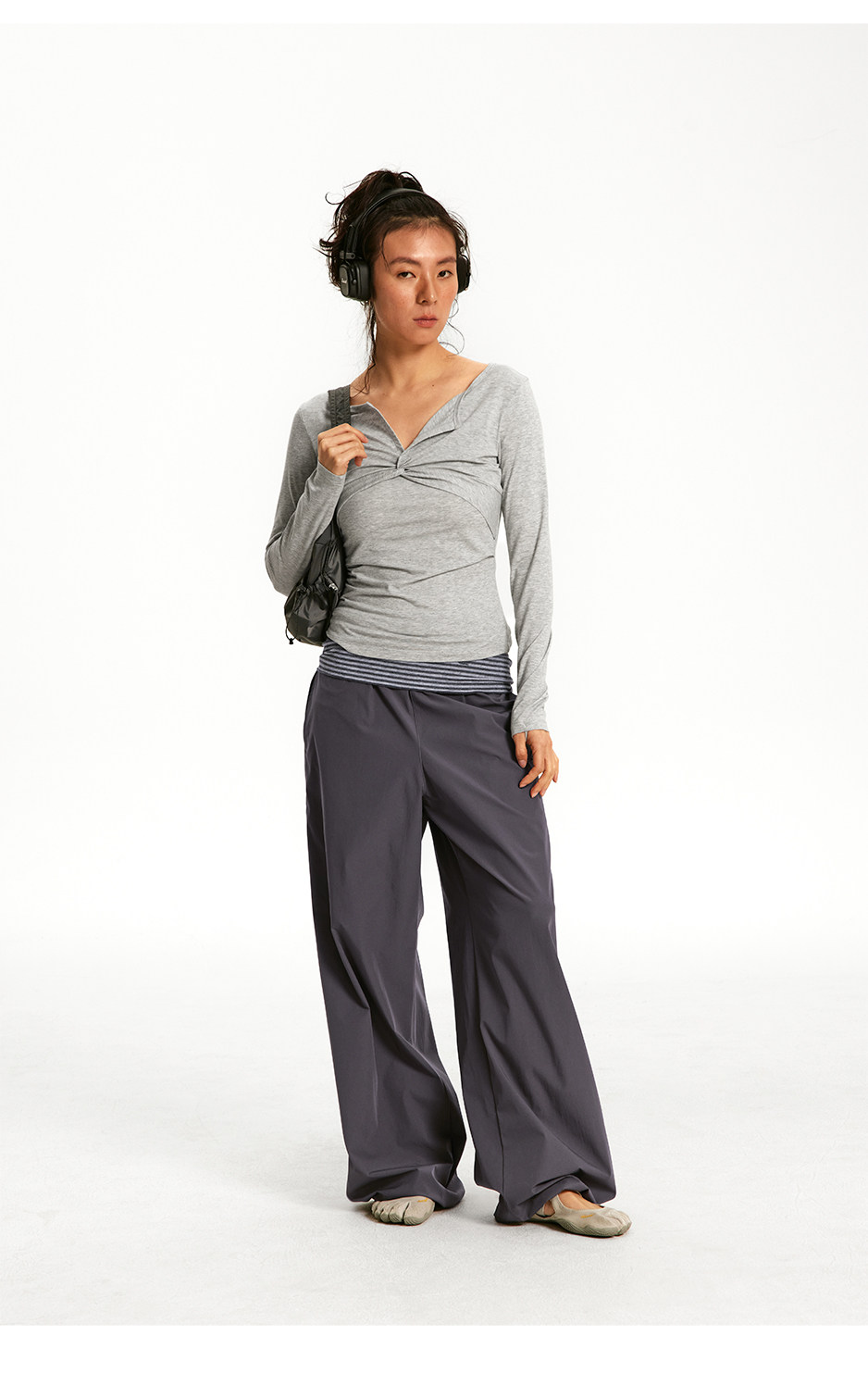 CryingCenter挺括橡筋腰宽松直筒休闲运动跳舞裤长裤工装裤