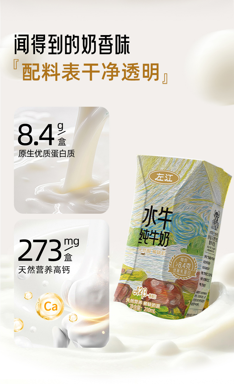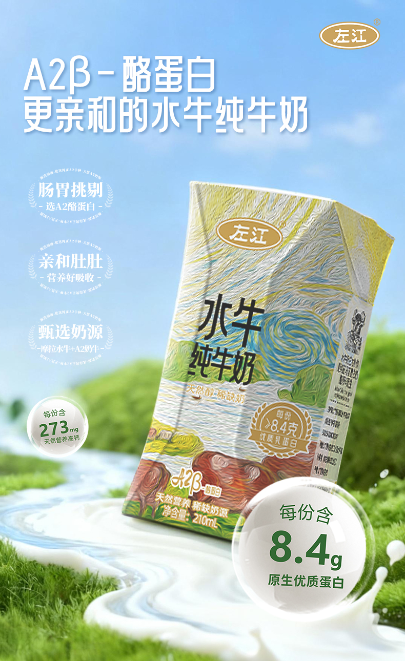 左江a2β-酪蛋白水牛纯牛奶 210ml*10盒 乳糖不耐受福音,营养好吸收