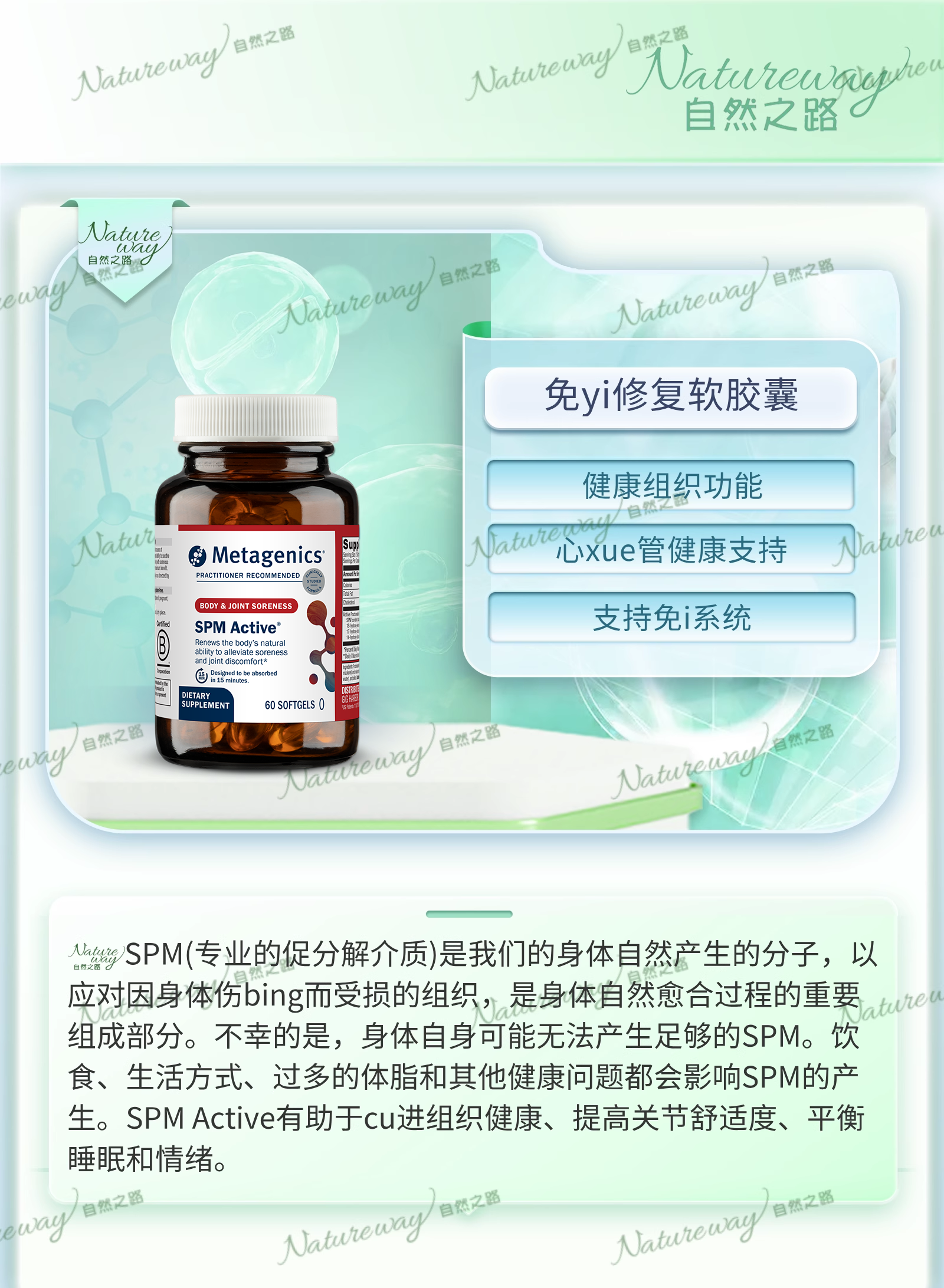 麦特Metagenics免疫修复 SPM Active 欧米伽3鱼油软胶囊