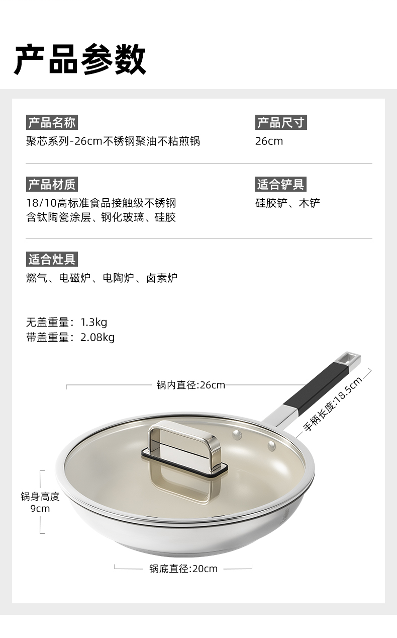 聚芯系列-26cm不锈钢聚油不粘煎锅