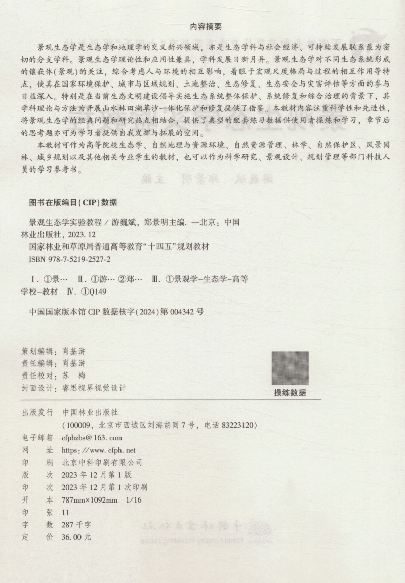景观生态学实验教程(国家林业和草原局普通高等教育十四五规划教材) &2527