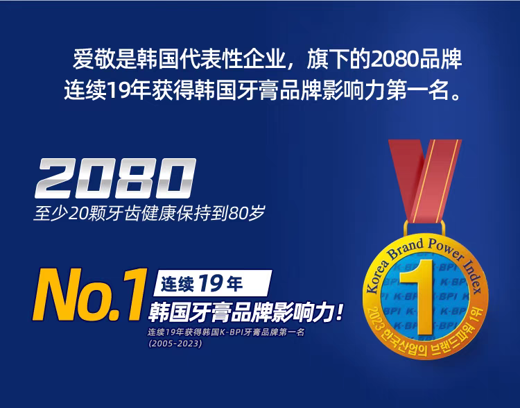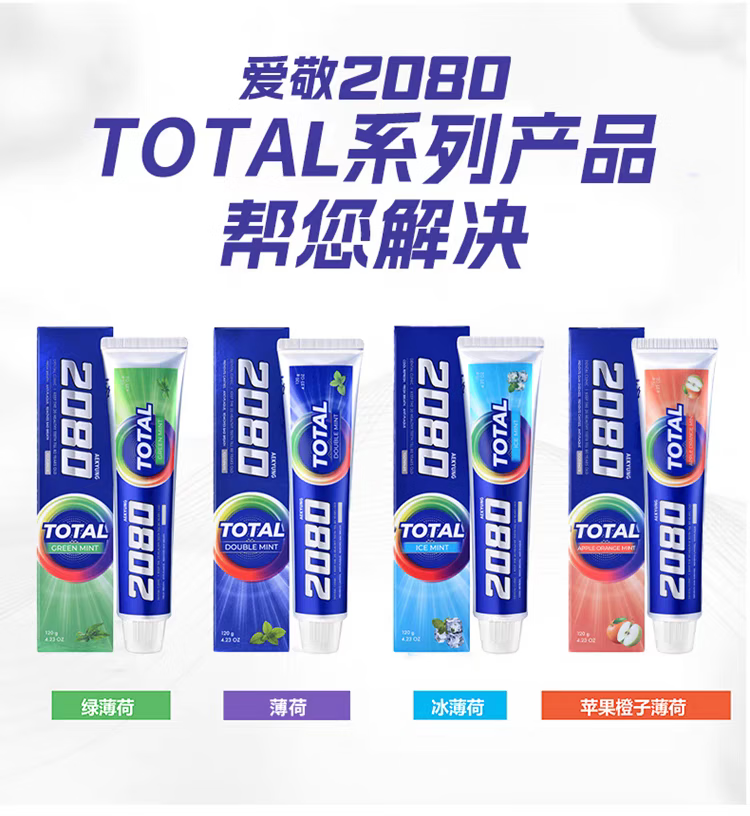 爱敬2080经典牙膏韩国进口清新口气防蛀护龈去渍薄荷牙膏 120g/支