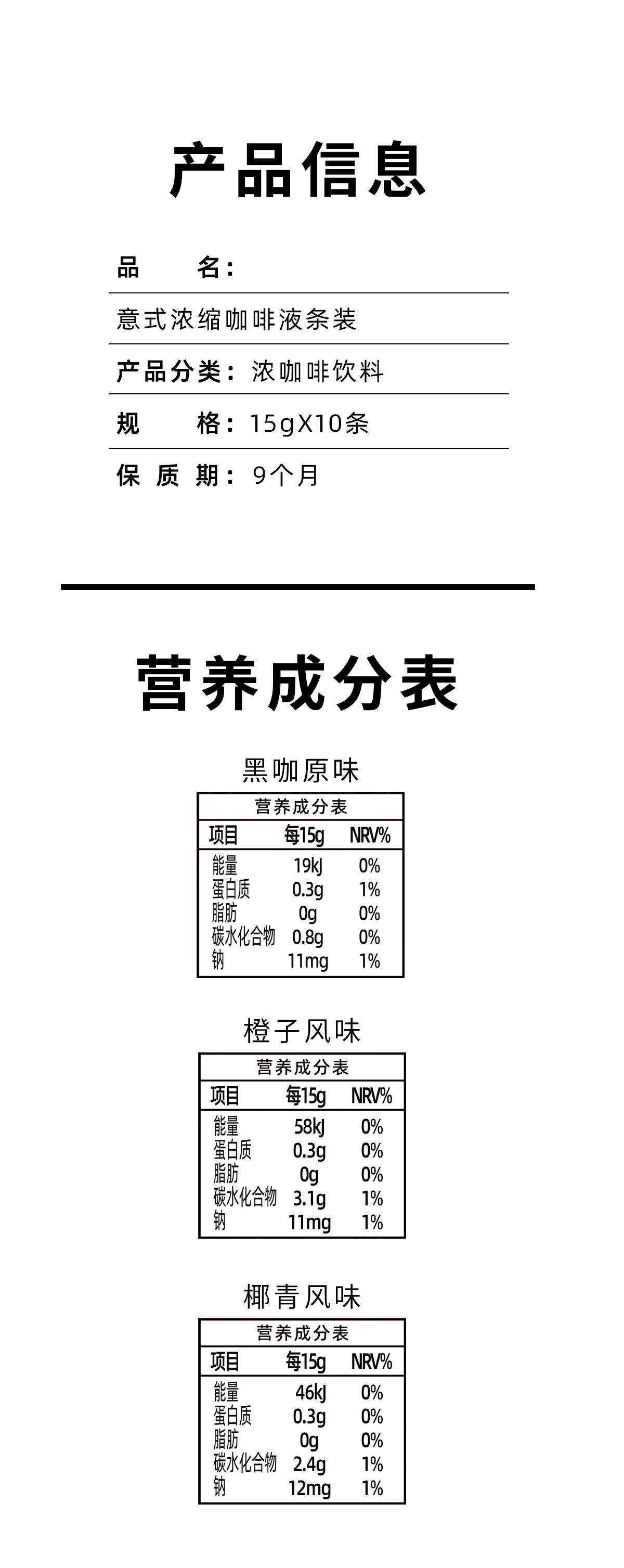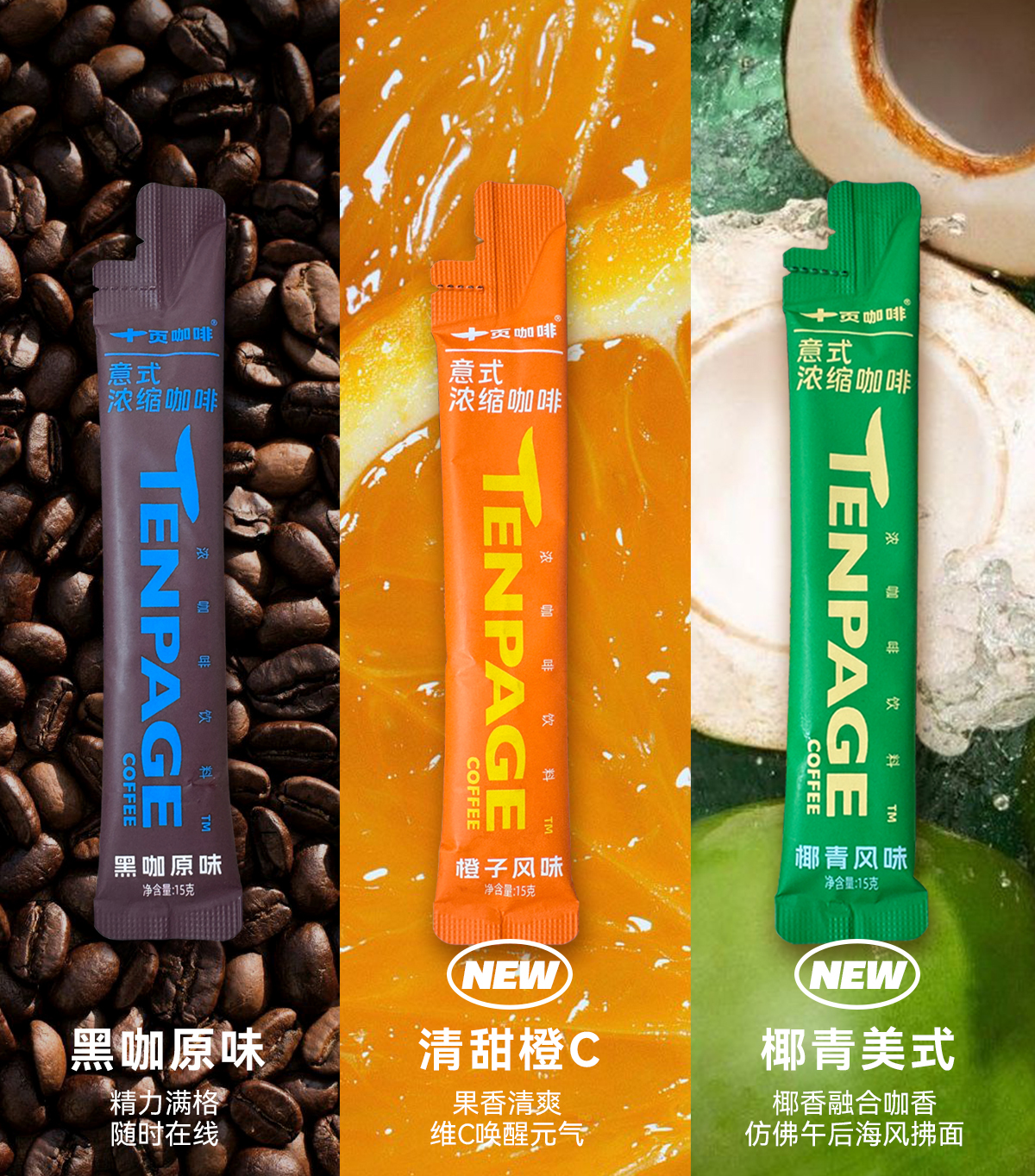 十页咖啡 意式浓缩咖啡液条装黑咖&椰青&橙C口味 15g*10条/包