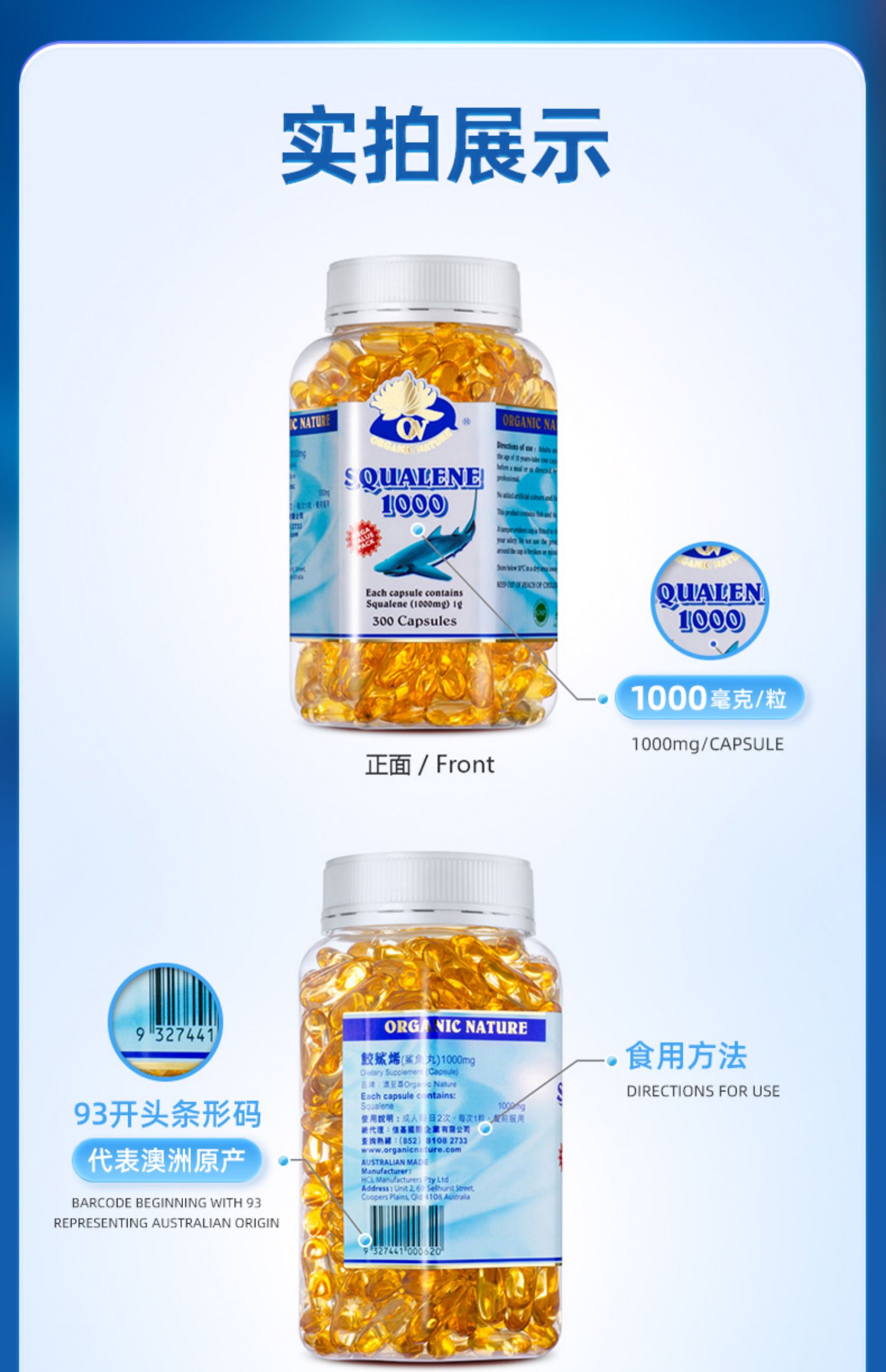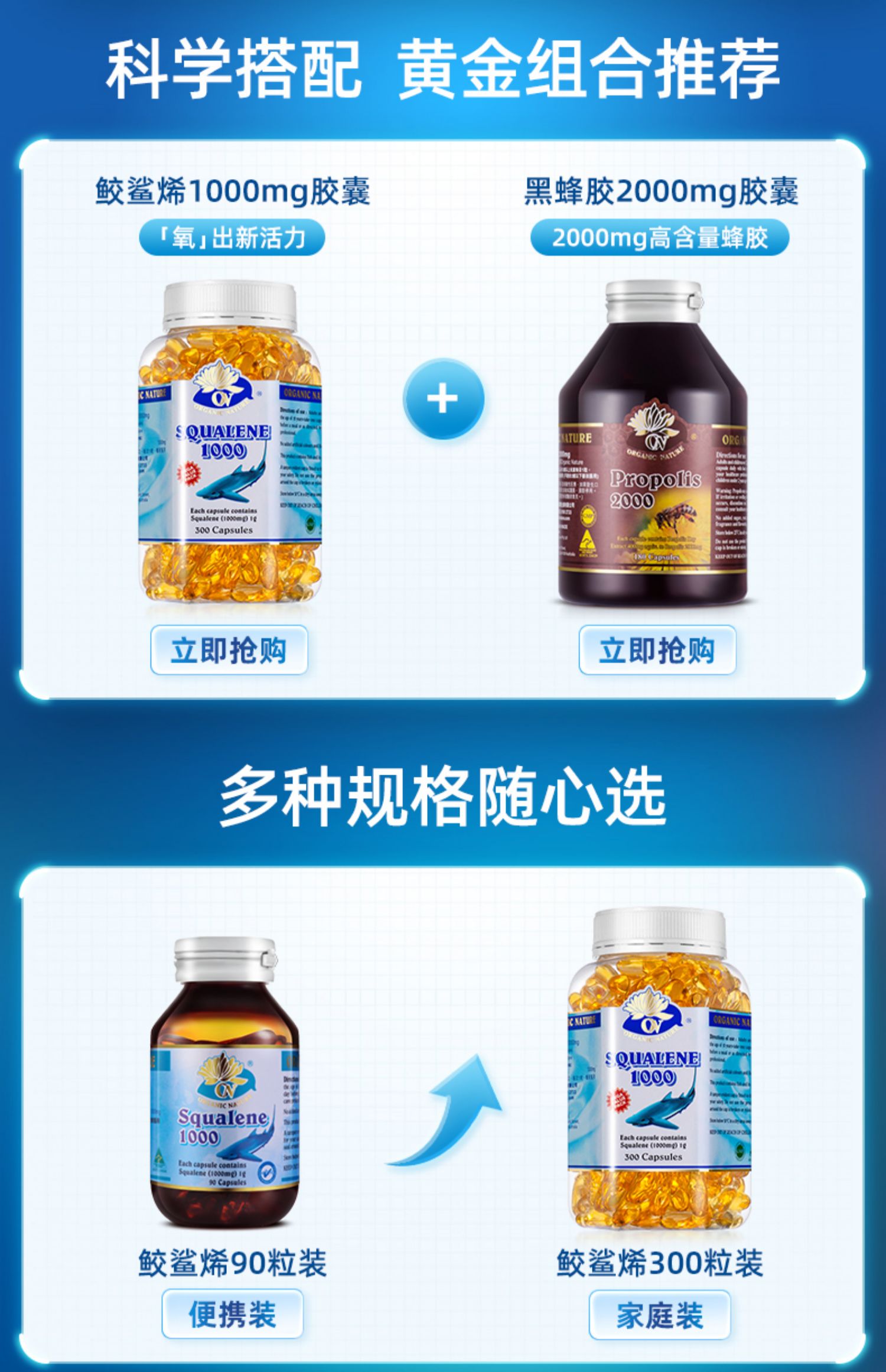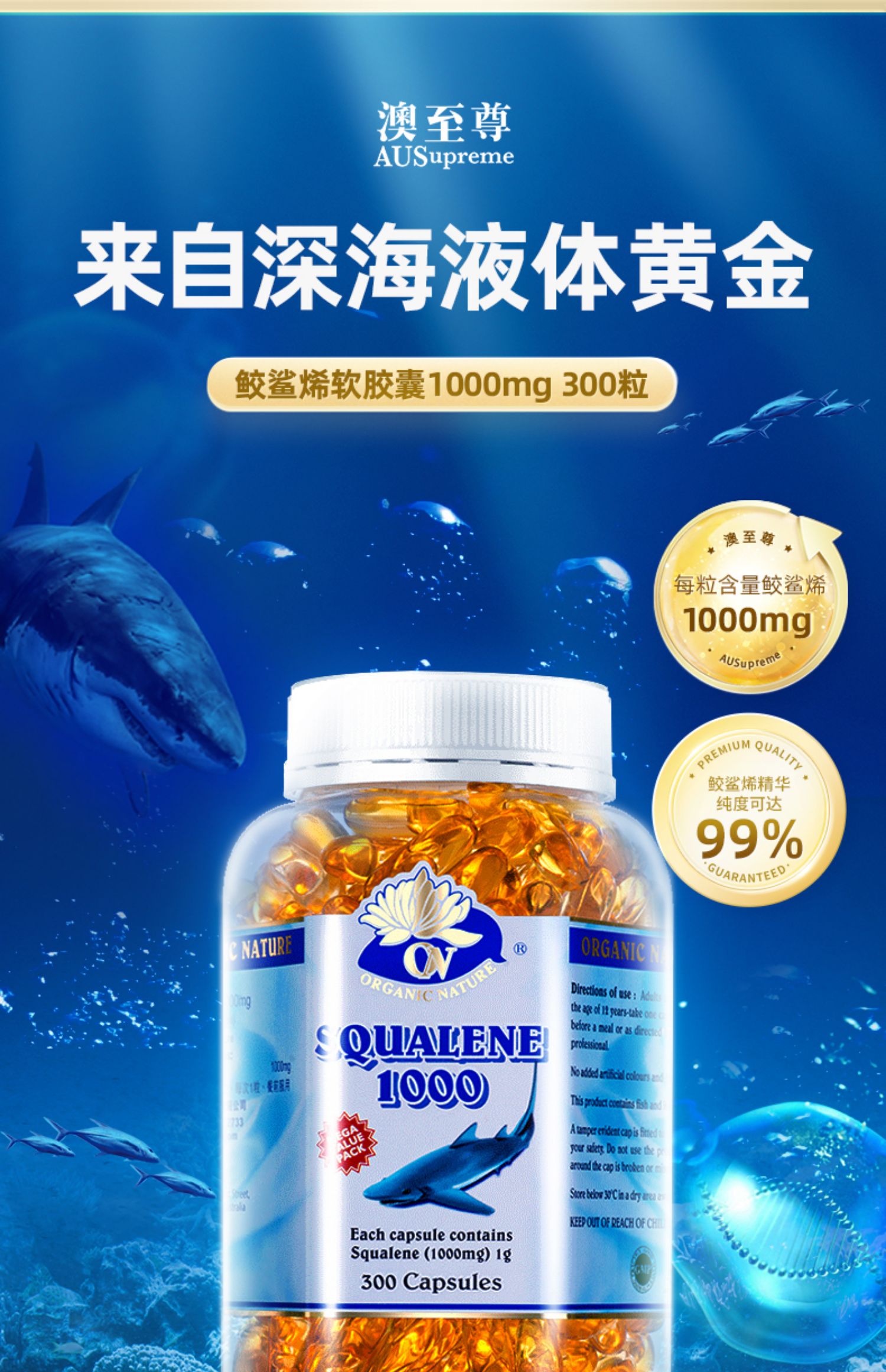 (香港直邮)澳至尊鲛鲨烯软胶囊1000mg 300粒保质期至2026-03-31/90粒保质期至2027-07-07