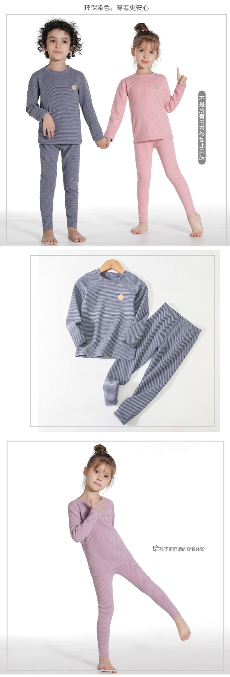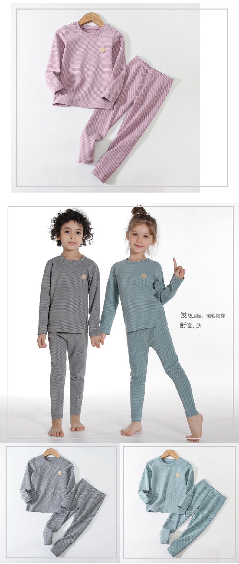 【柔软锁温,舒适好穿】秋冬新款儿童条纹家居服暖绒套装男女童秋衣秋裤保暖内衣套装