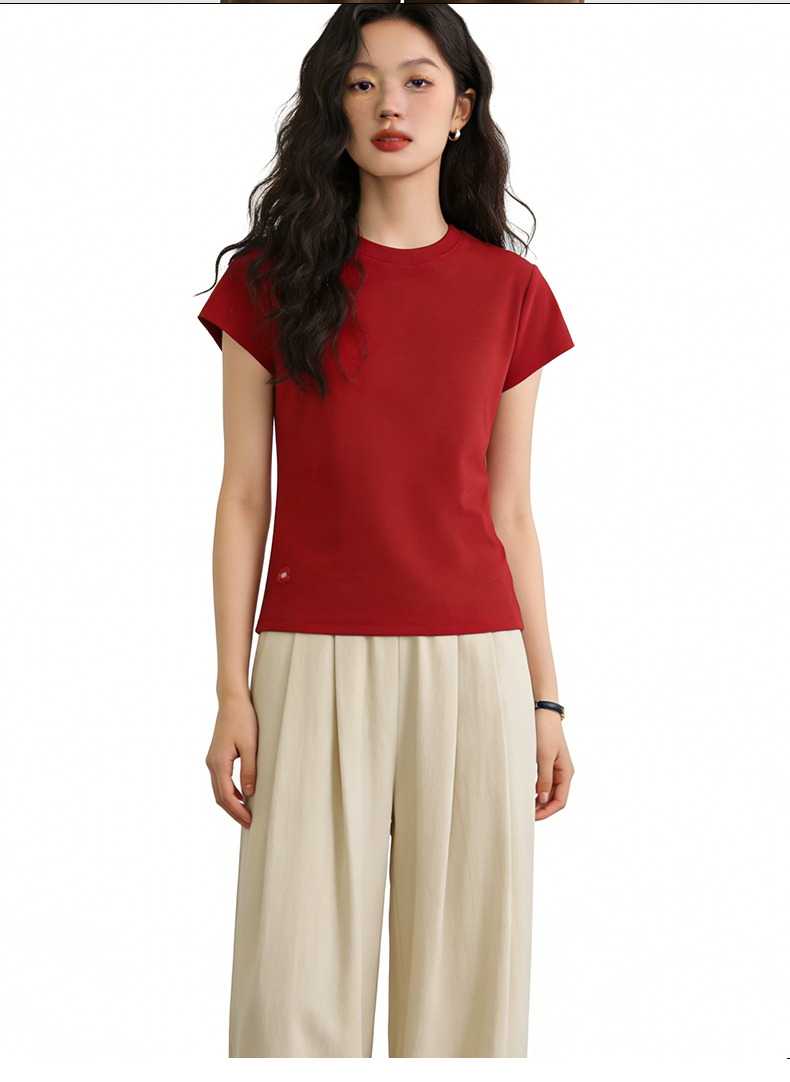 爆仓3-7天发货【QINGFAN 小刺绣纯色圆领T恤】精致小刺绣 告别单调 吸汗透气不闷热 微弹不勒肉 无骨缝制经典版型不挑身材 单穿内搭都好看 MWX