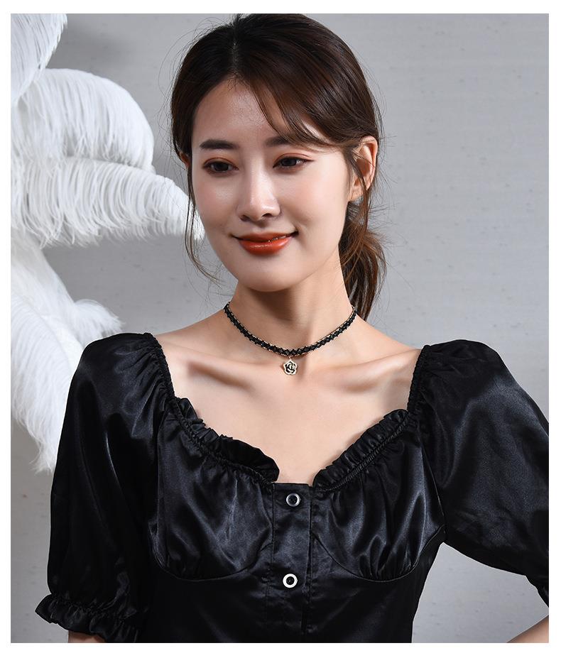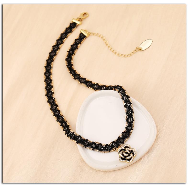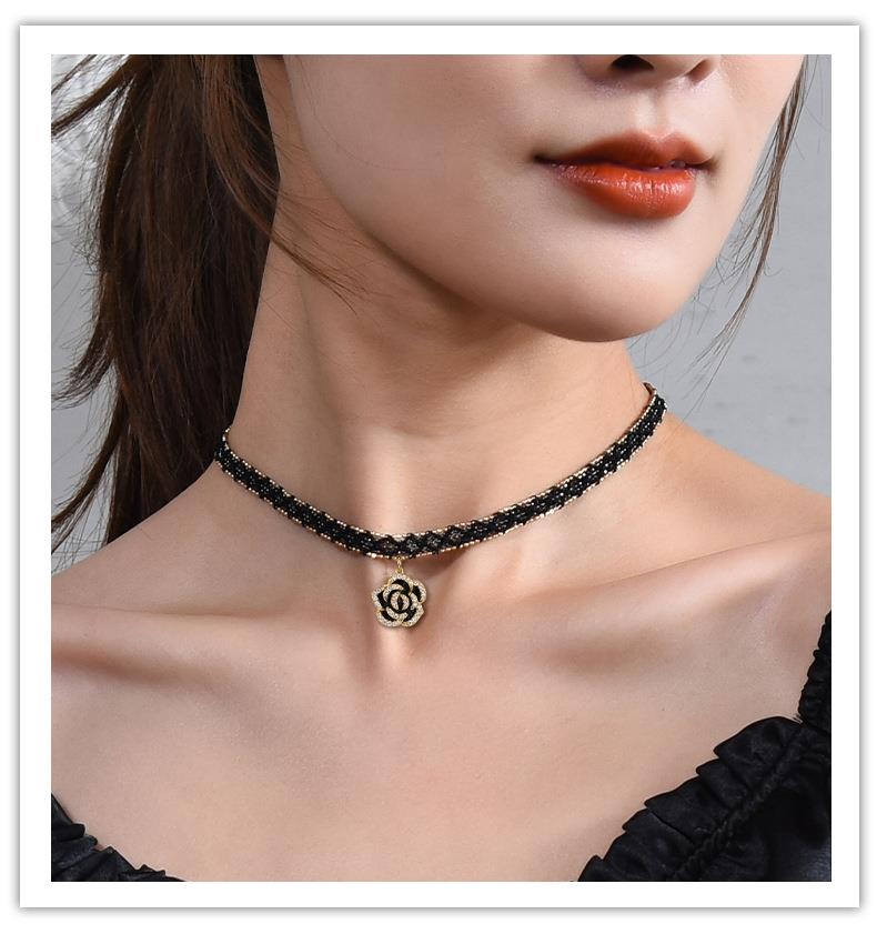 【女主choker蕾丝颈链】女锁骨链玫瑰花吊坠黑色性感项链颈带批发