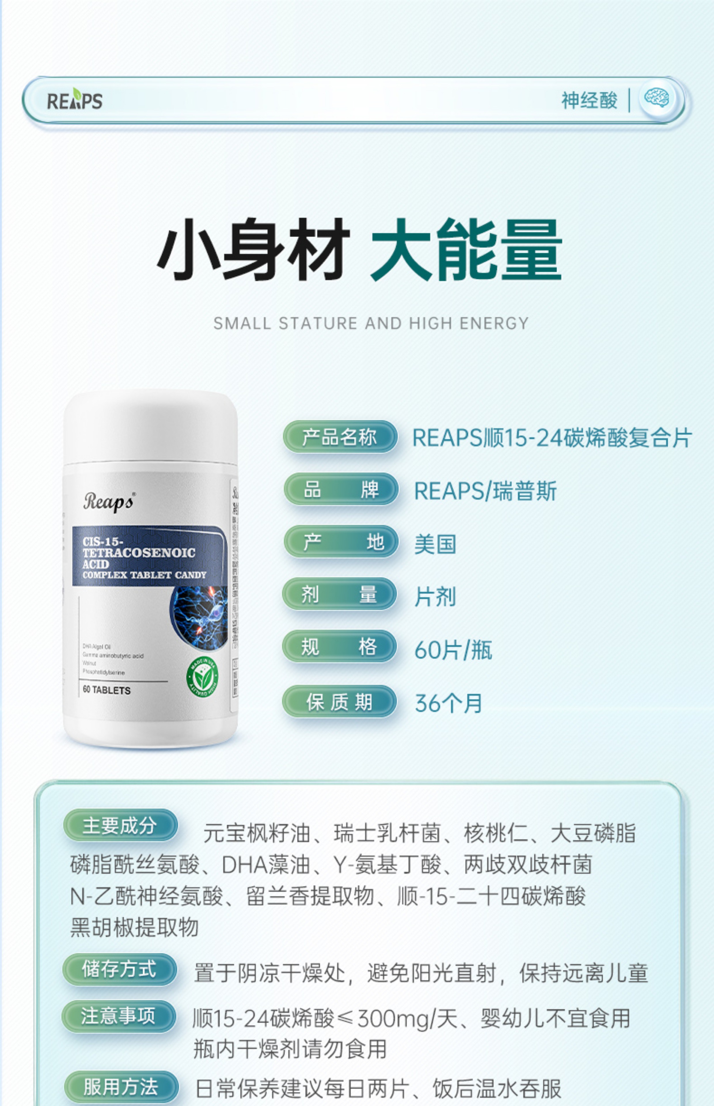 【礼想心动】Reaps 瑞普斯 中老年 顺-15二十四碳烯酸复合片 60片/瓶