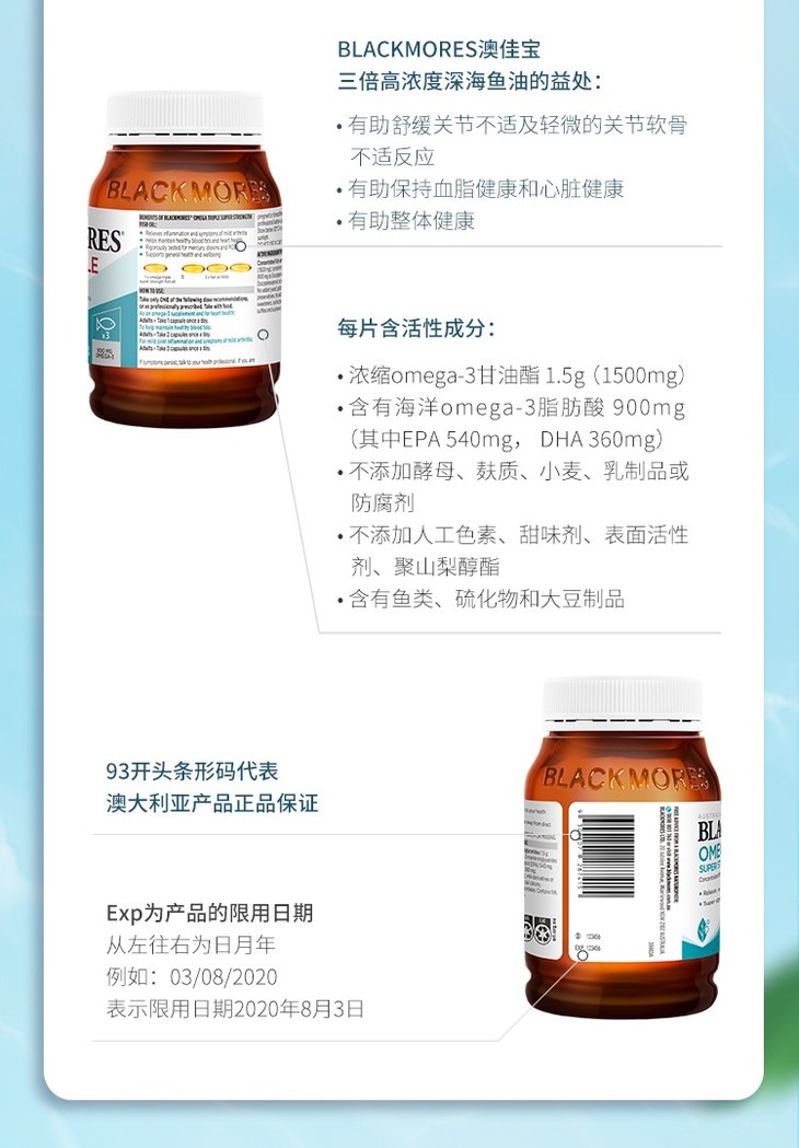 【保税仓】澳佳宝三倍鱼油150粒*2瓶+大豆卵磷脂160粒*1瓶
