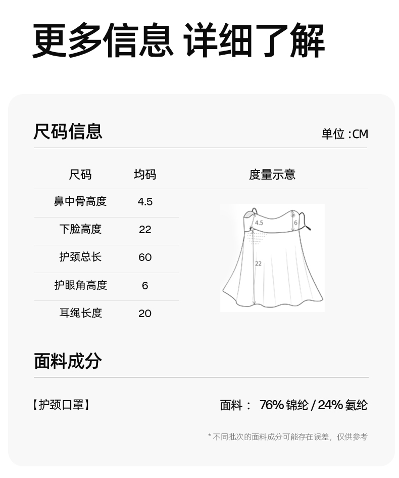 小野和子无痕半脸护颈口罩防紫外线26年新款Y26224008S2