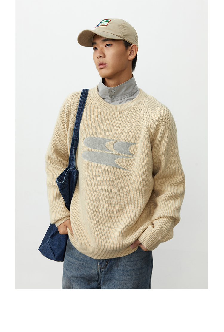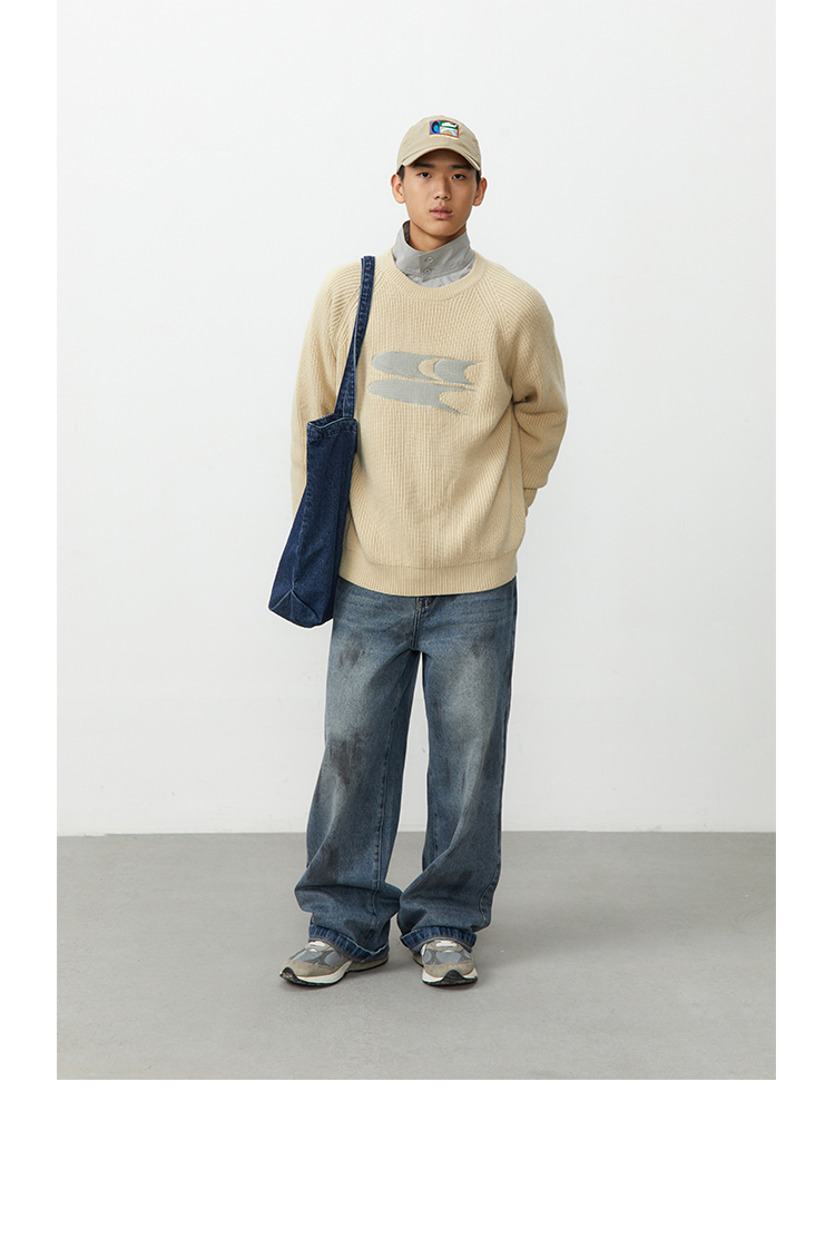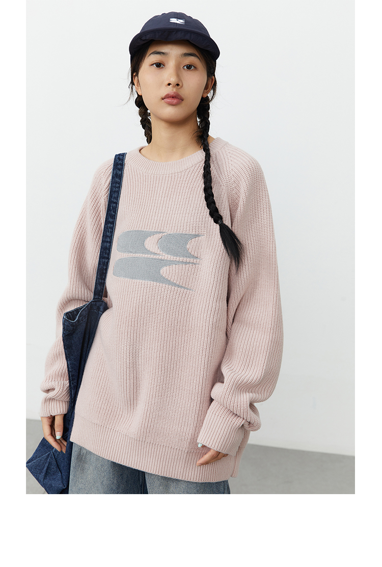 CryingCenter 基础款logo圆领套头粗针毛衣长袖保暖通勤 哭喊中心