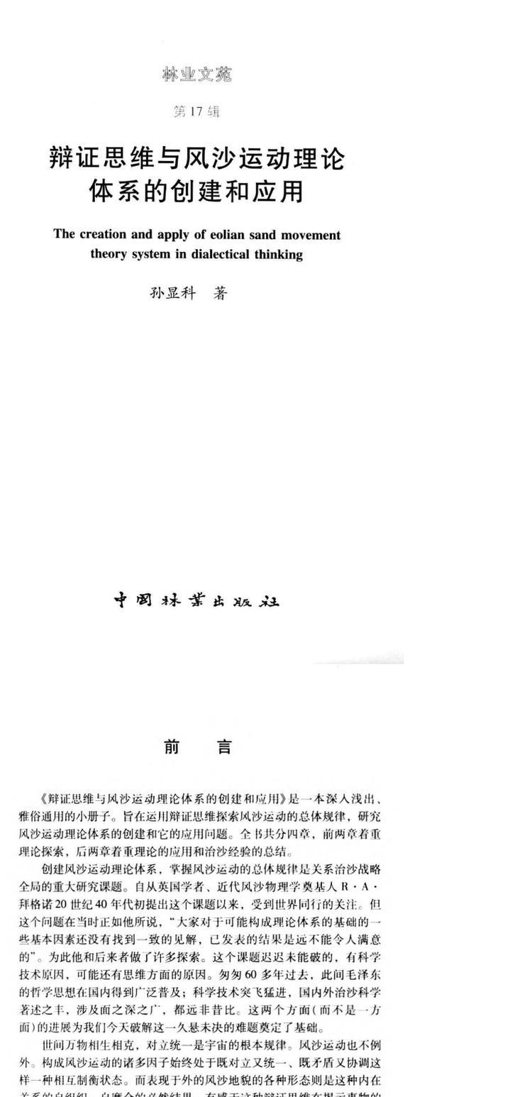 辩证思维与风沙运动理论体系的创建和应用 5780 中国林业出版社