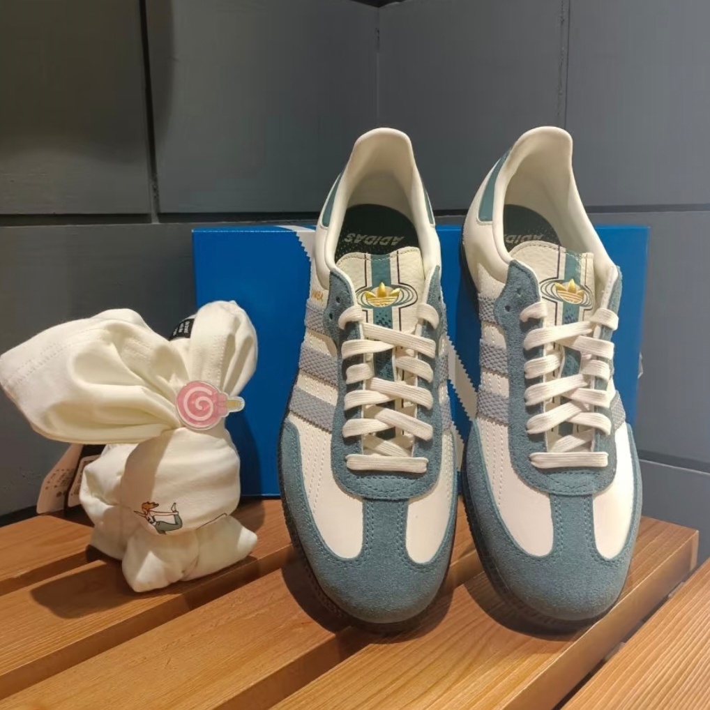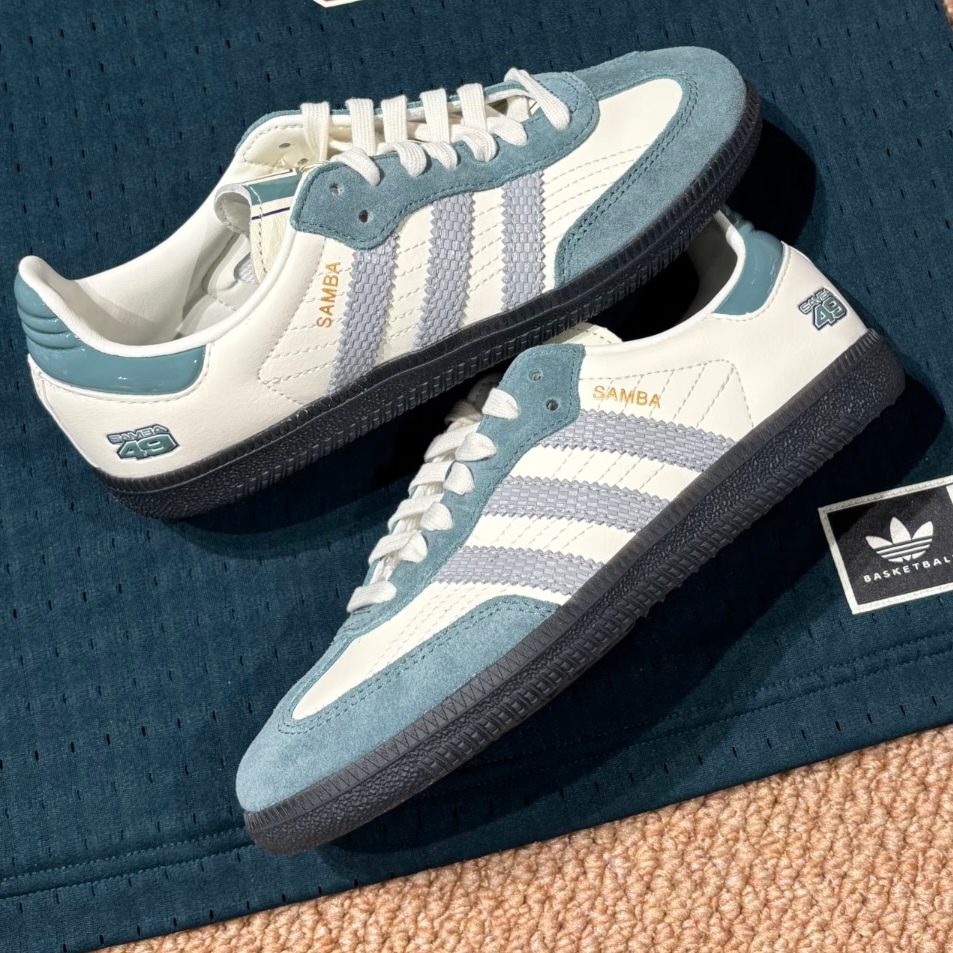 阿迪达斯Samba新配色复古感拉满的鞋型✨ 白与浅蓝拼接💧 清新又特别 三条纹经典