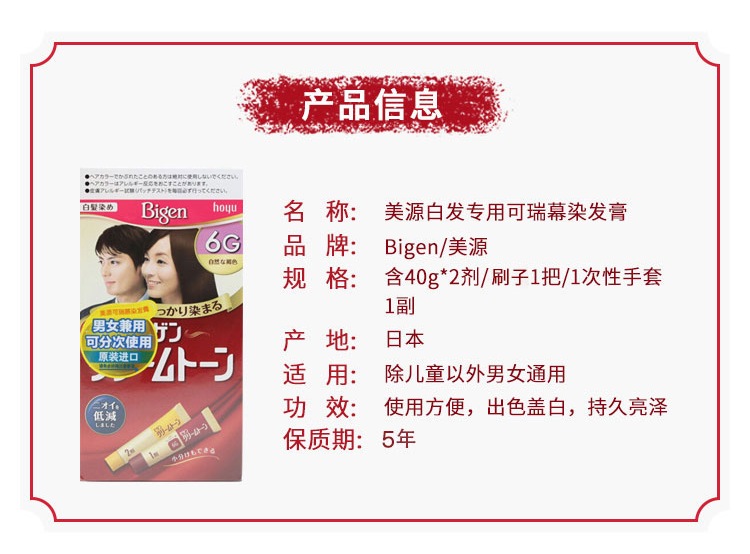 【保税仓】HOYU美源白发染发剂膏3G明亮栗色80g盒