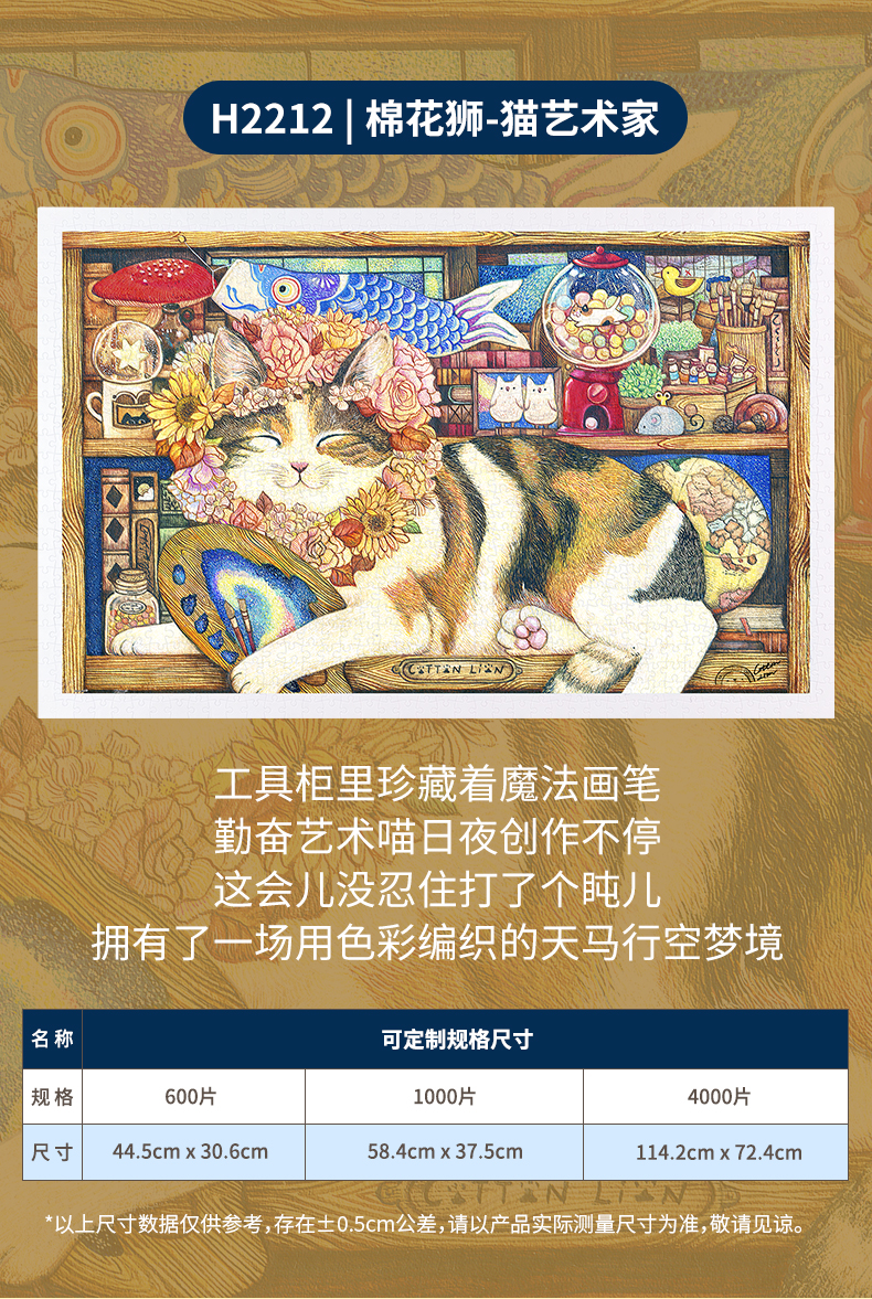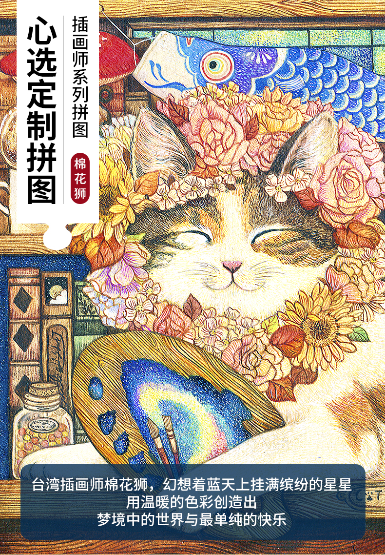 3寸61片灯光球拼图 J1131 棉花狮-开运奶牛猫