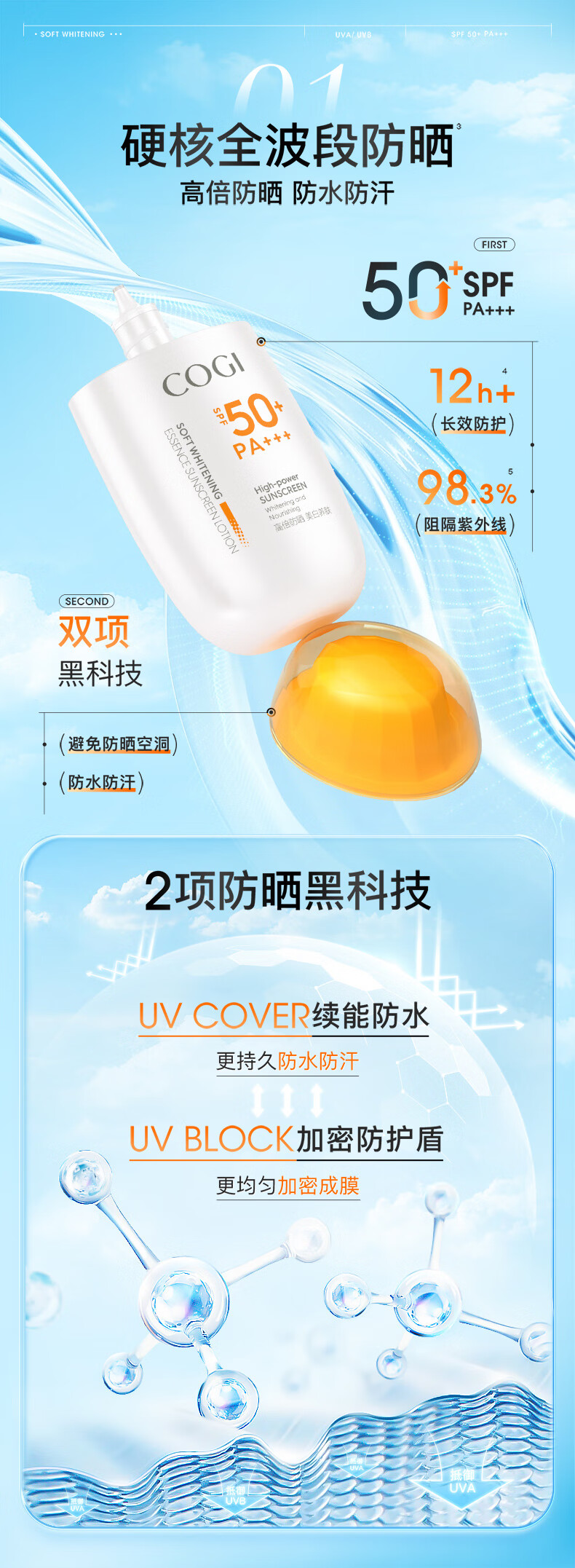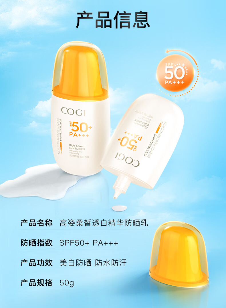 高姿 柔皙透白精华防晒乳SPF50+PA+++50g