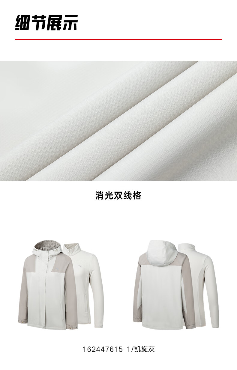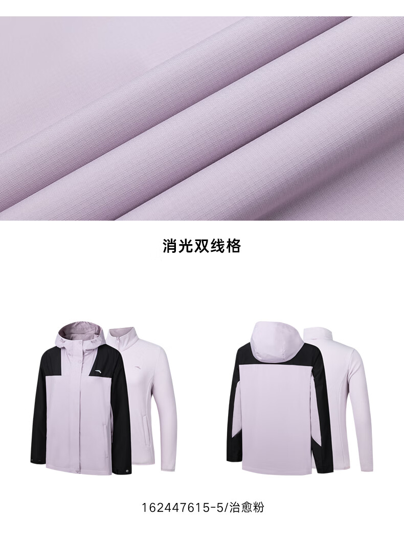 安踏(ANTA)防泼水运动外套 女冬季新款三合一可拆卸保暖梭织两件套162447615