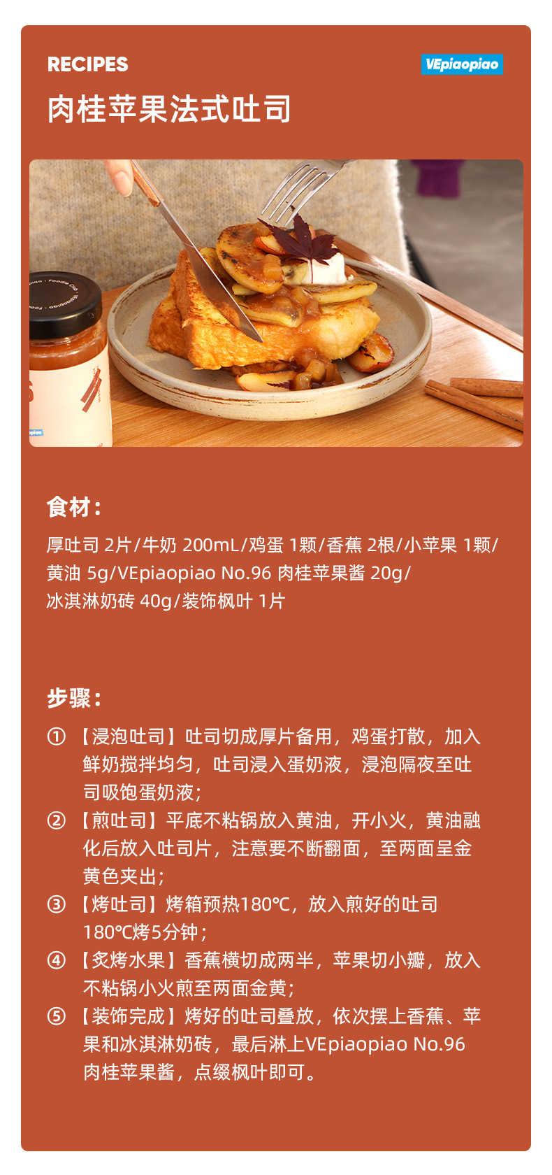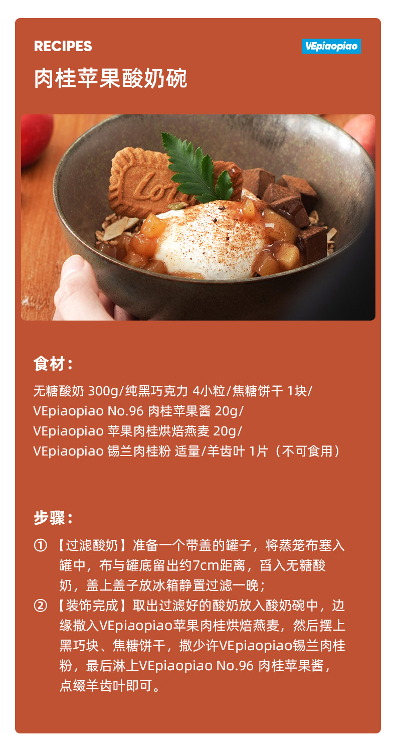 VEpiaopiao NO.96肉桂苹果酱【吐司面包/松饼/酸奶碗/冲饮】