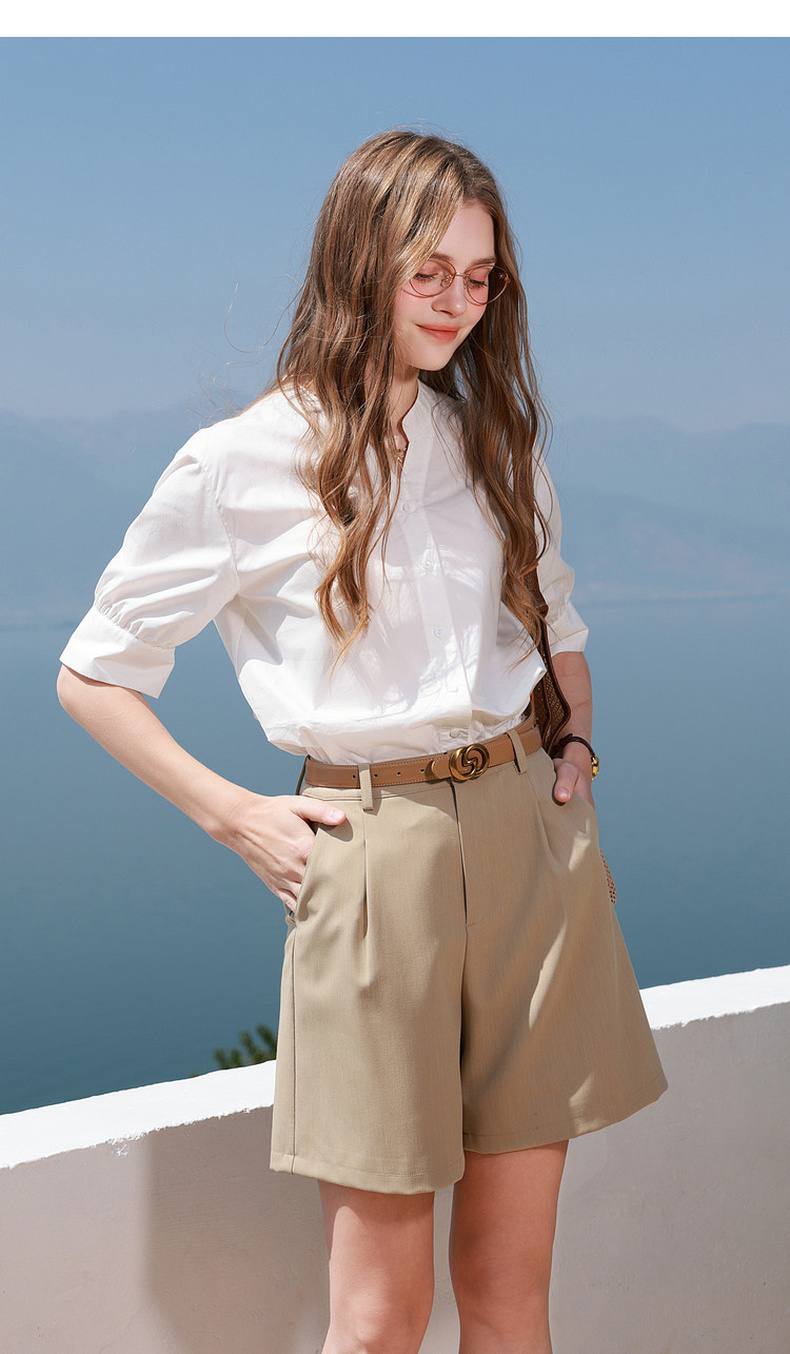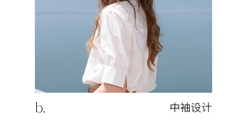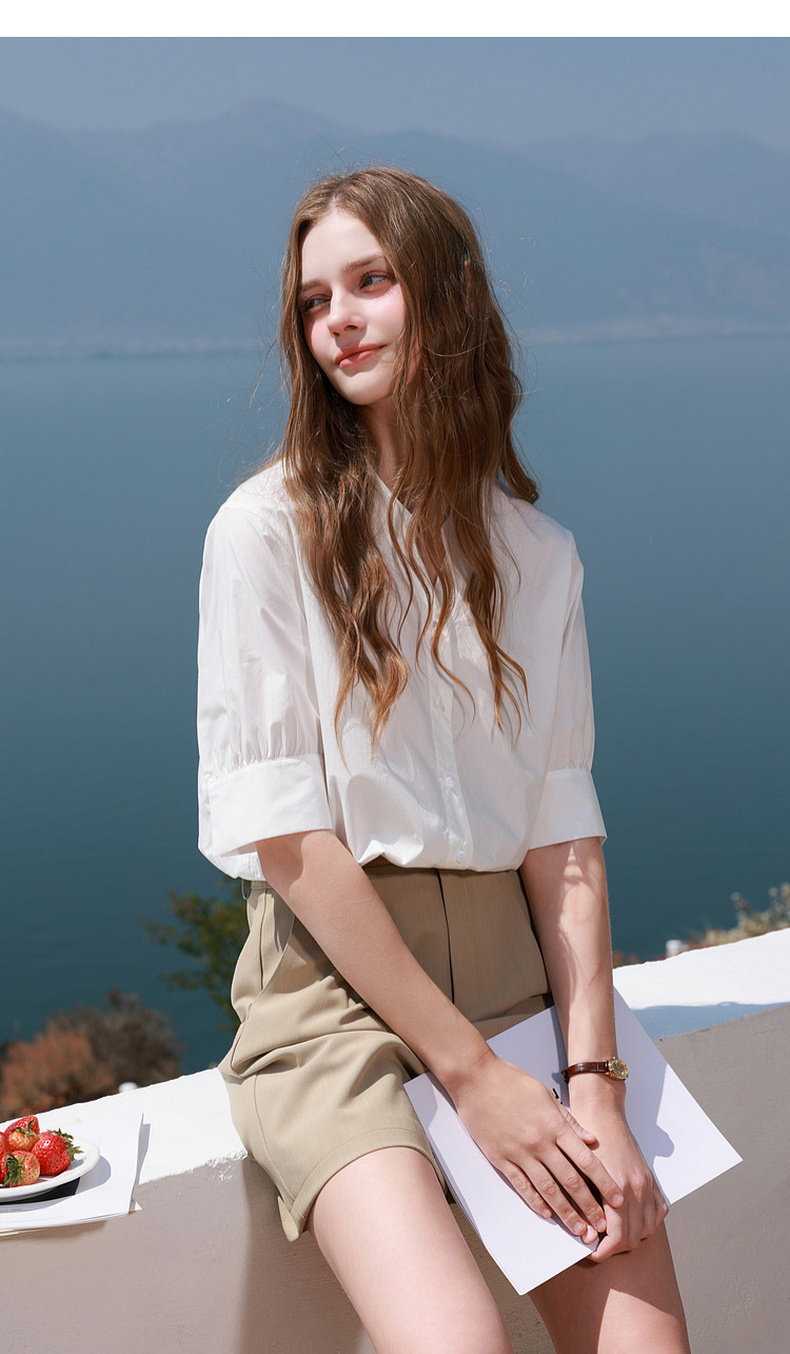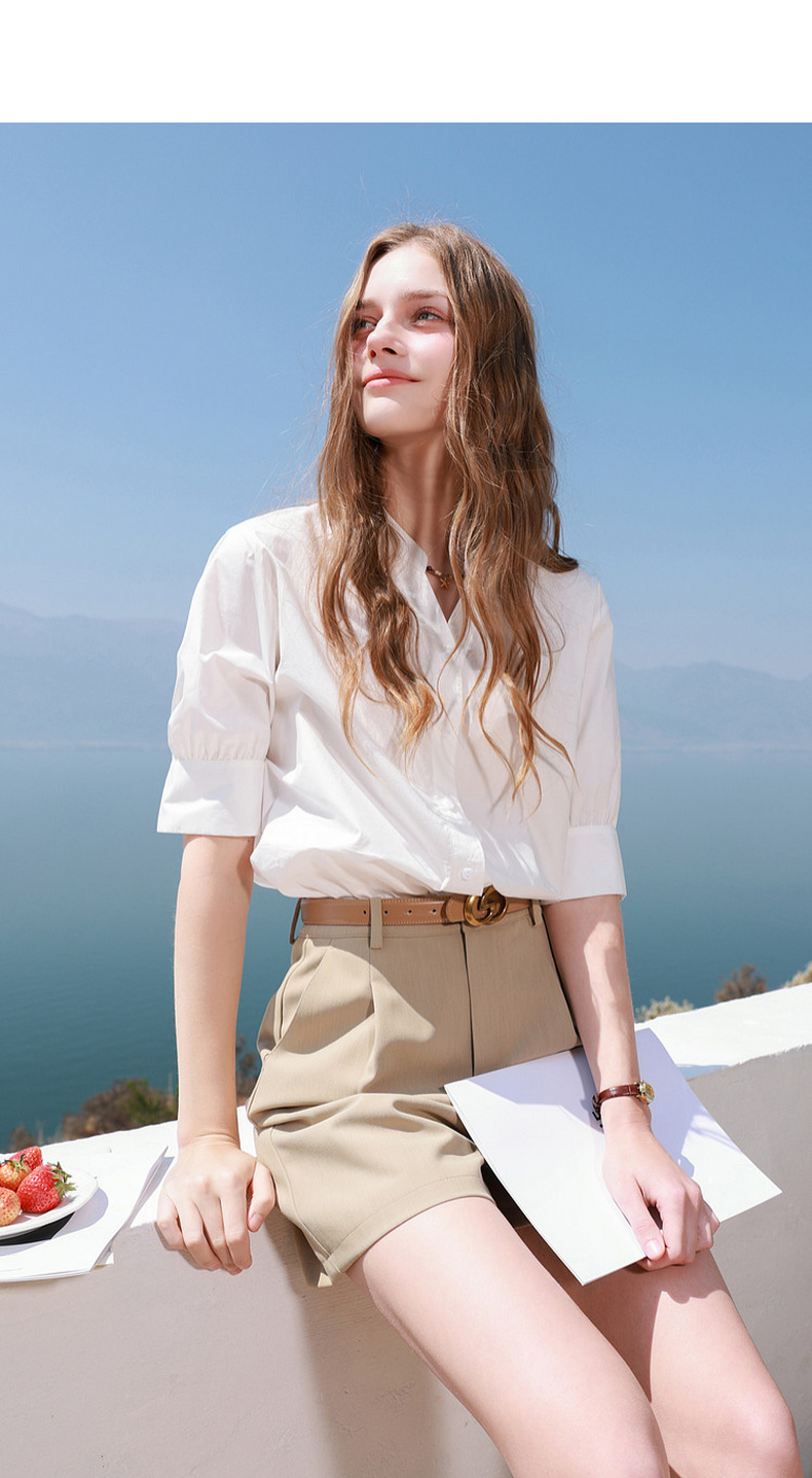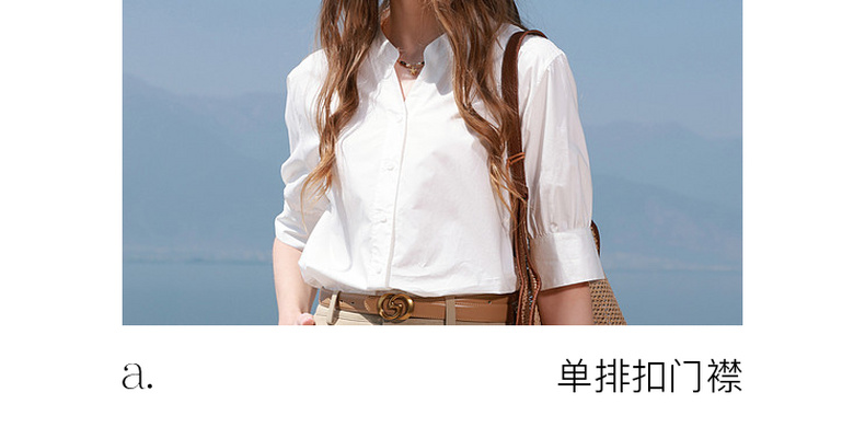 【100棉】三彩2026夏季新款休闲白衬衫宽松中袖衬衣简约M