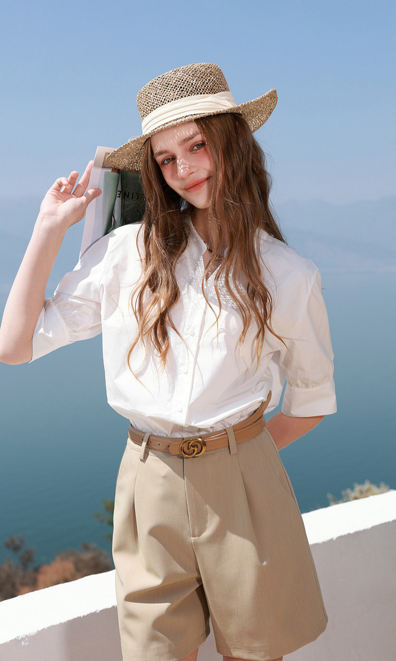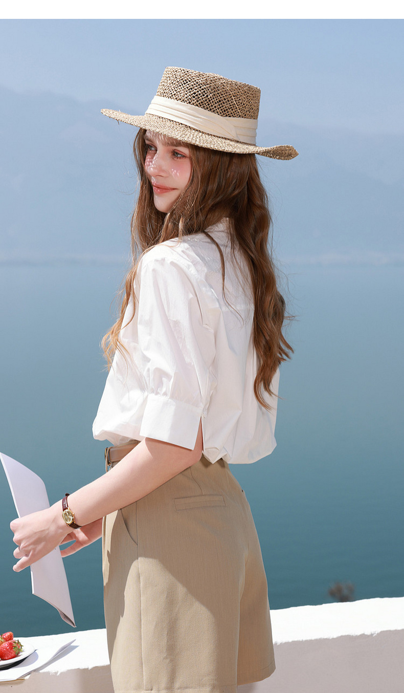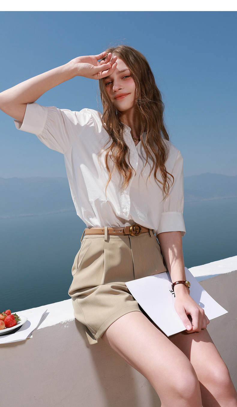 【100棉】三彩2026夏季新款休闲白衬衫宽松中袖衬衣简约M