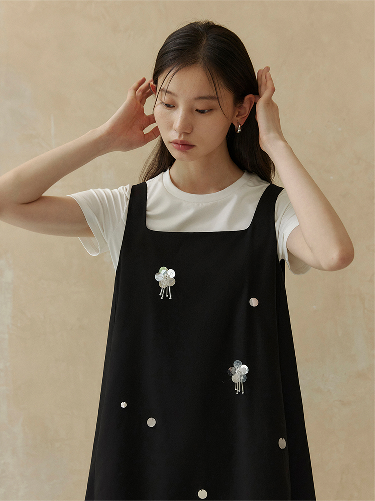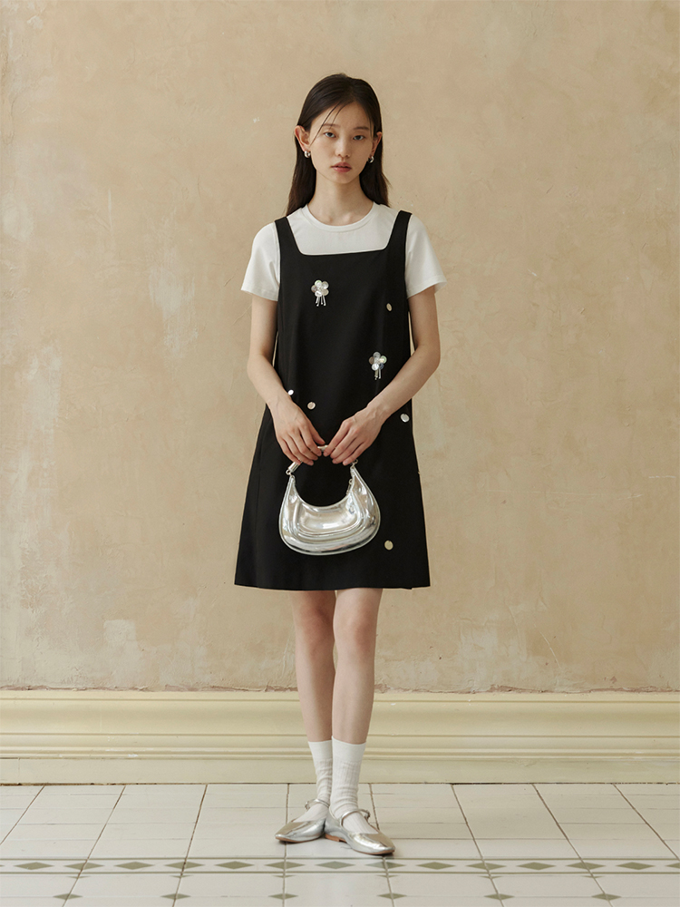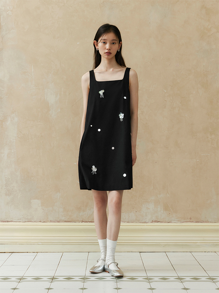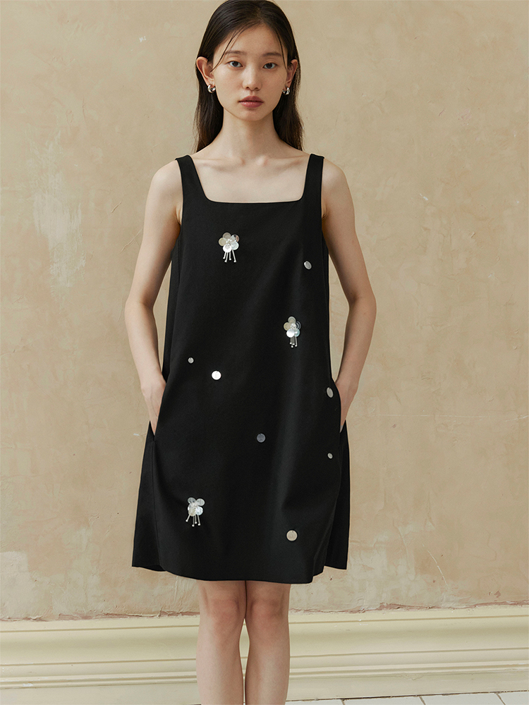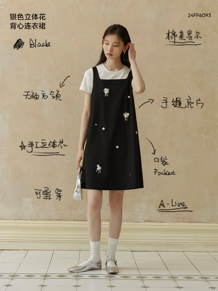 ForPoem 现货 24/SS原创设计手工钉珠银色立体花朵亮片无袖显瘦背心裙
