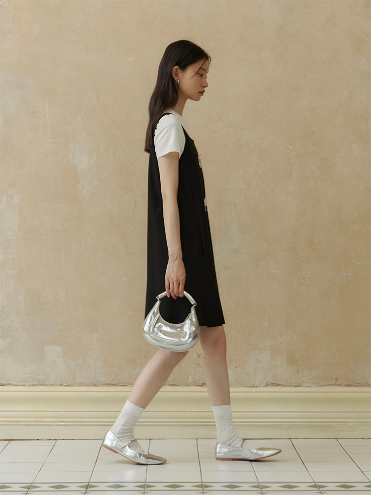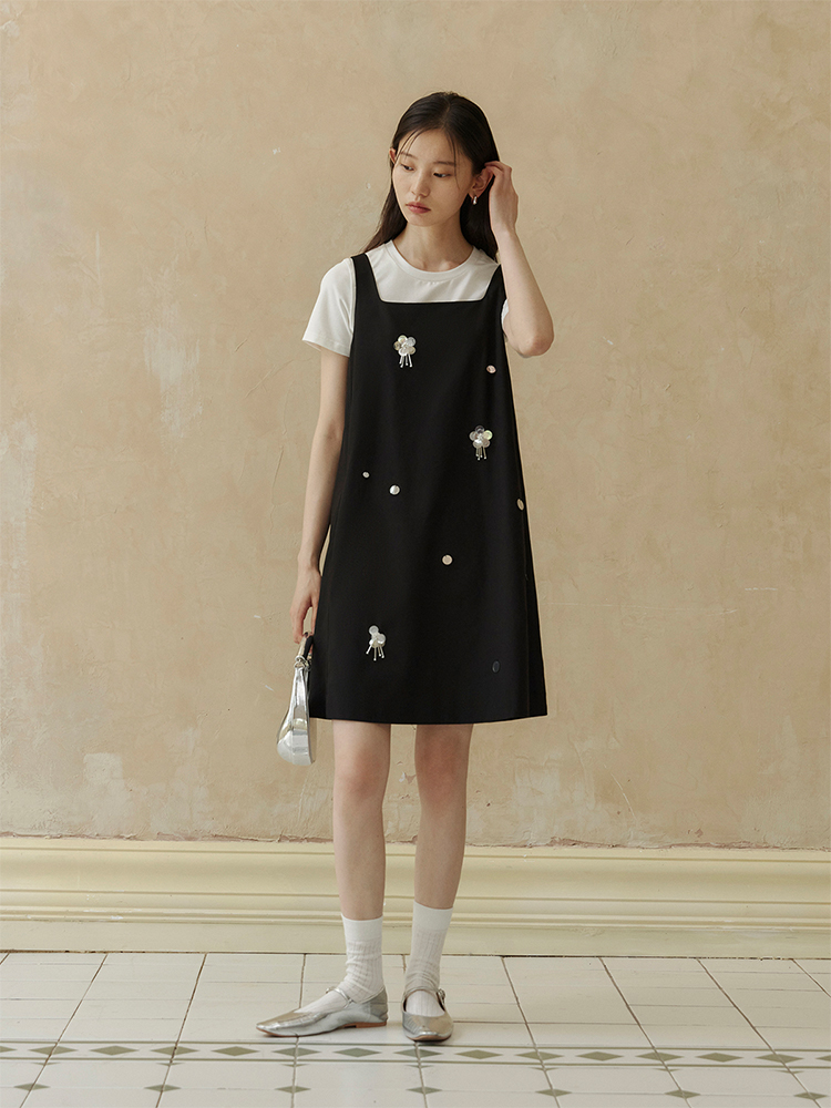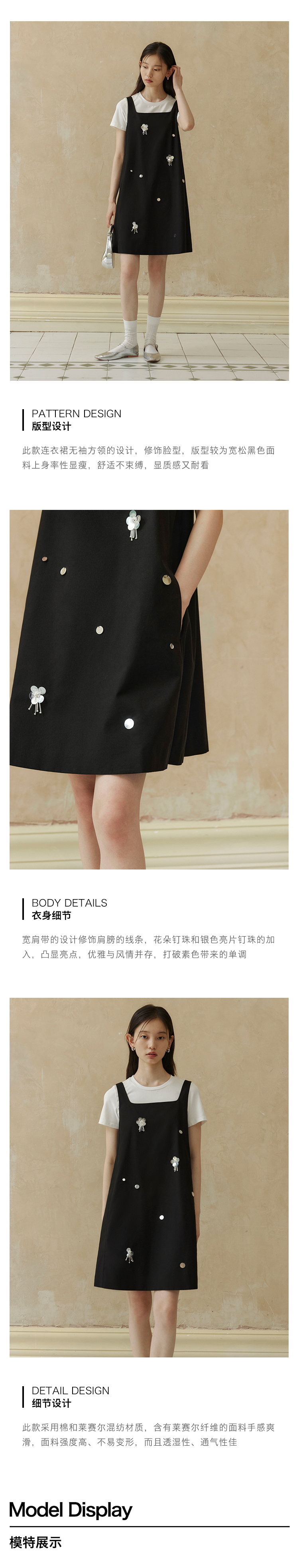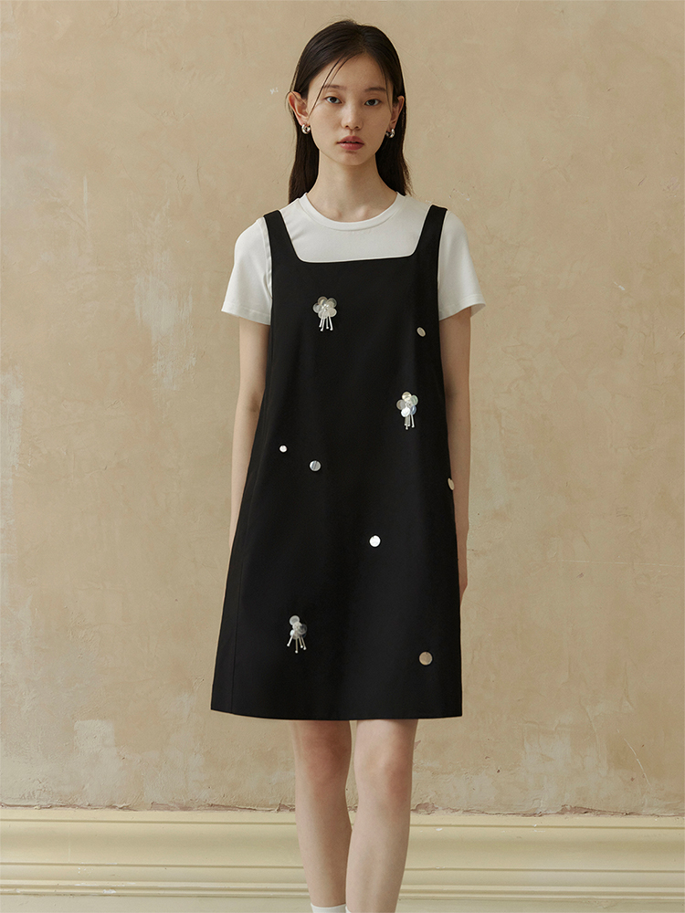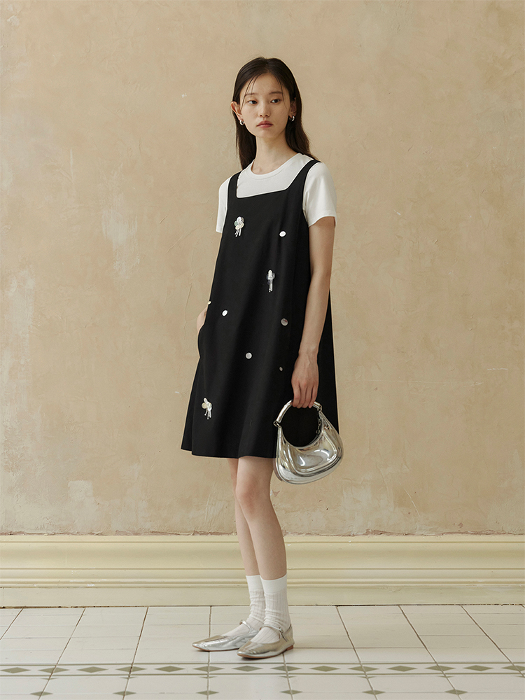 ForPoem 现货 24/SS原创设计手工钉珠银色立体花朵亮片无袖显瘦背心裙