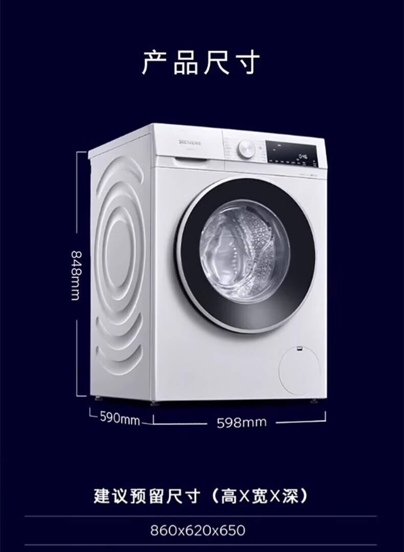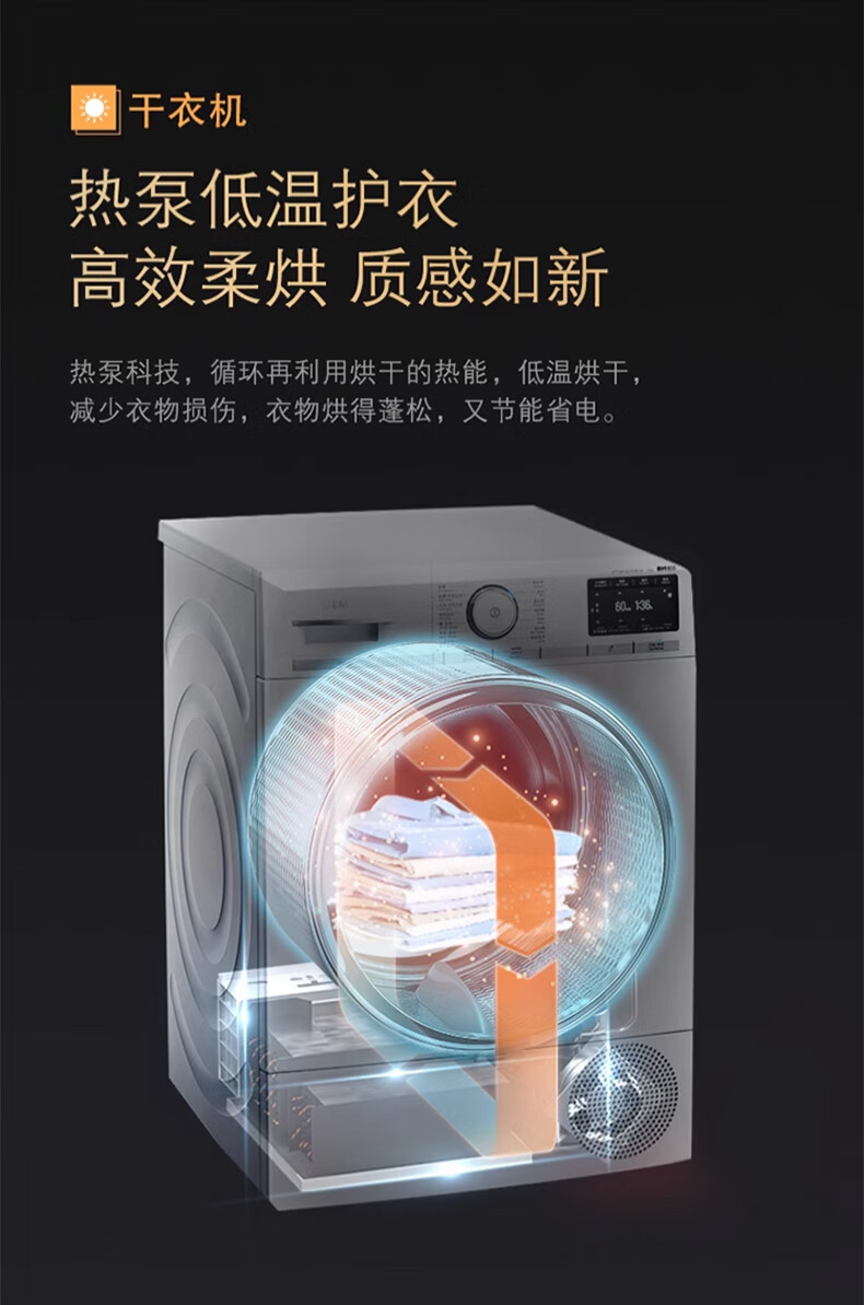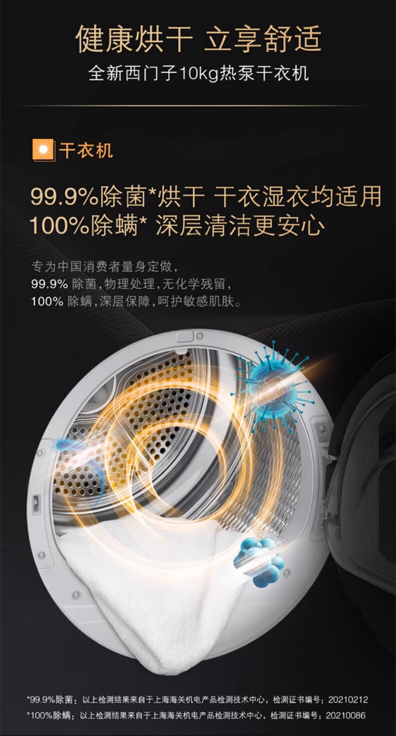 西门子IQ800欧洲进口干衣机10+10kg洗烘套装智能除渍 WG52A100AW/WQ56A6A00W