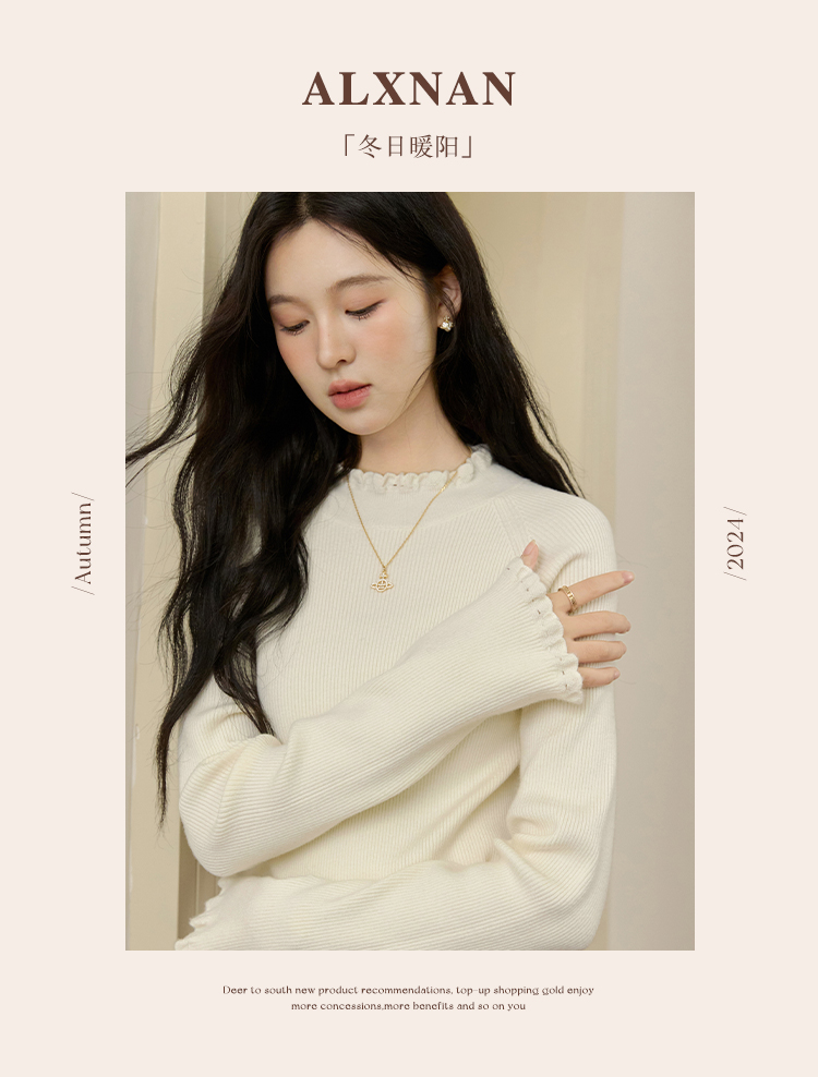鹿向南「白璧无瑕」杏色狐狸毛领毛衣女冬新款连帽长袖针织衫上衣