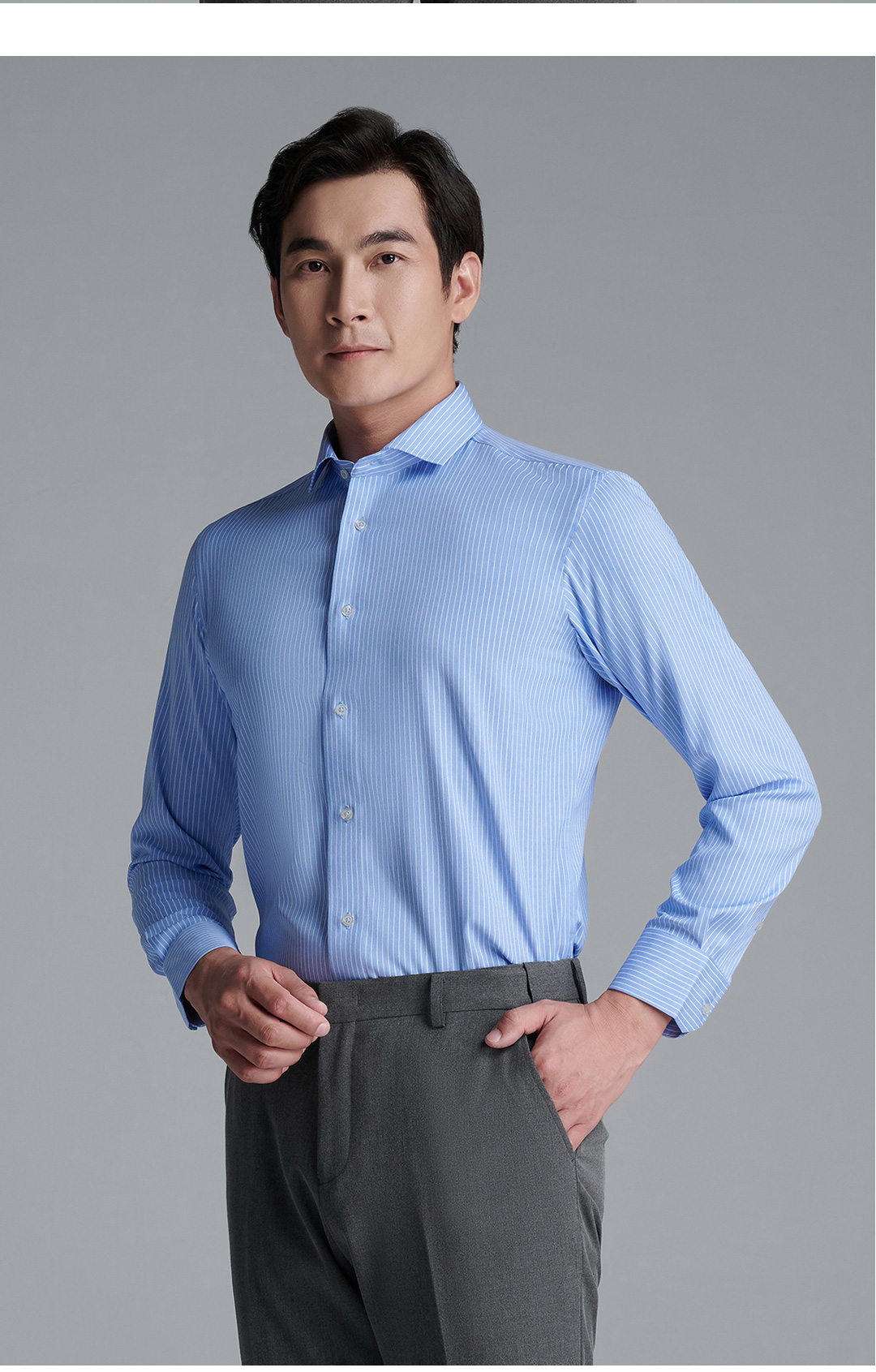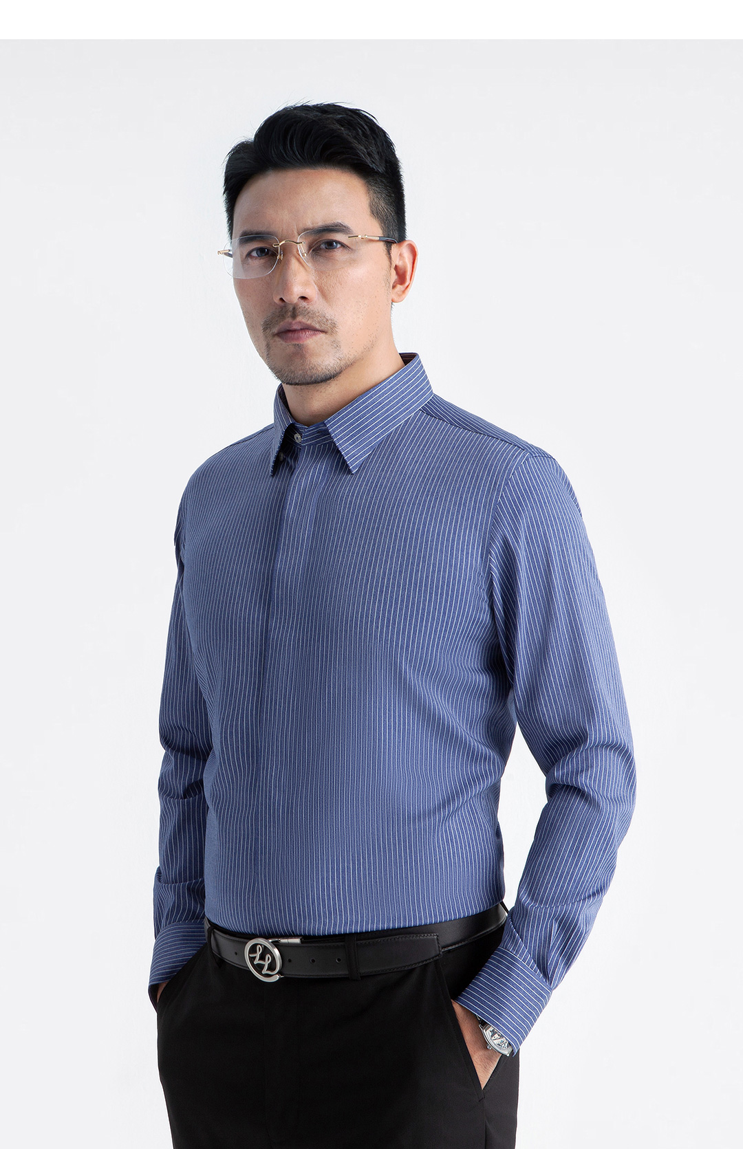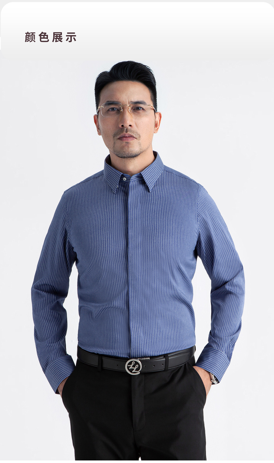 【凌志T2】舒弹丝门襟暗扣条纹衬衫M555A