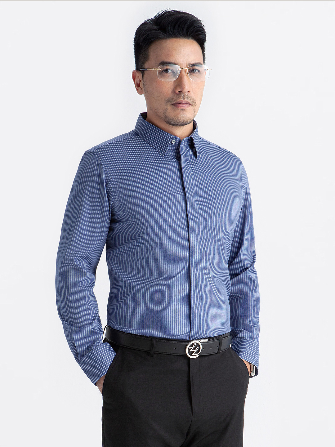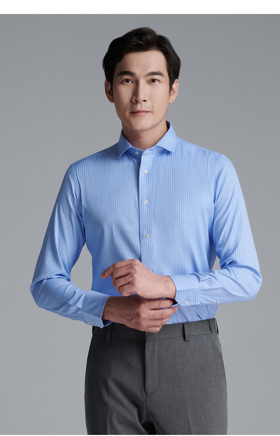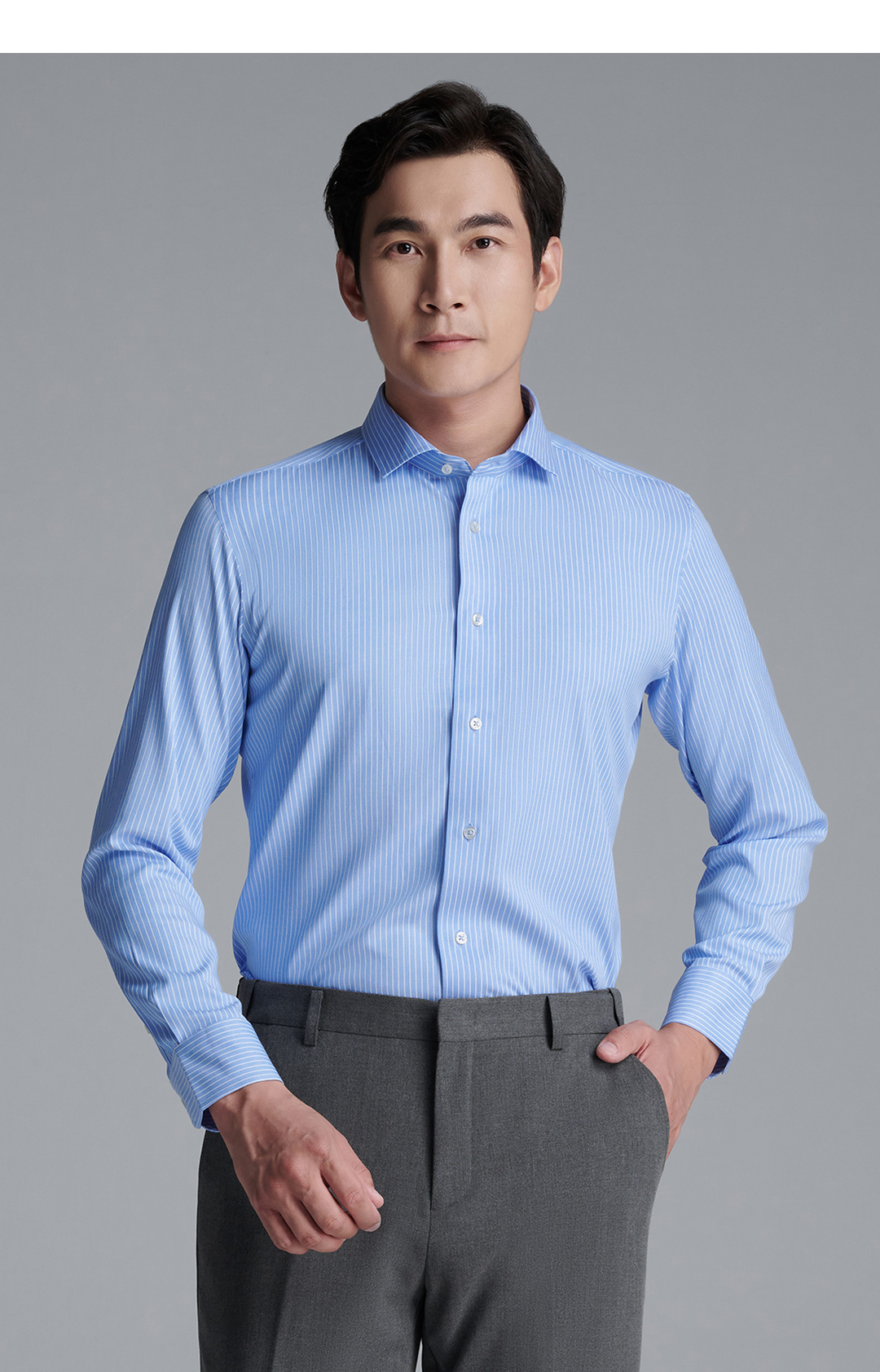 【凌志T2】舒弹丝门襟暗扣条纹衬衫M555A