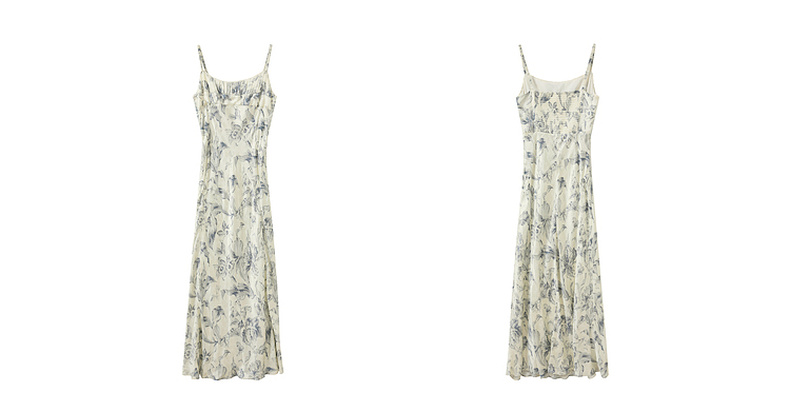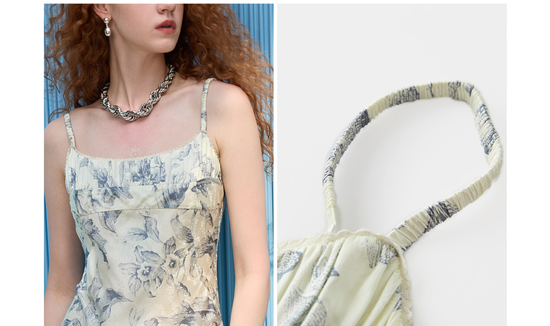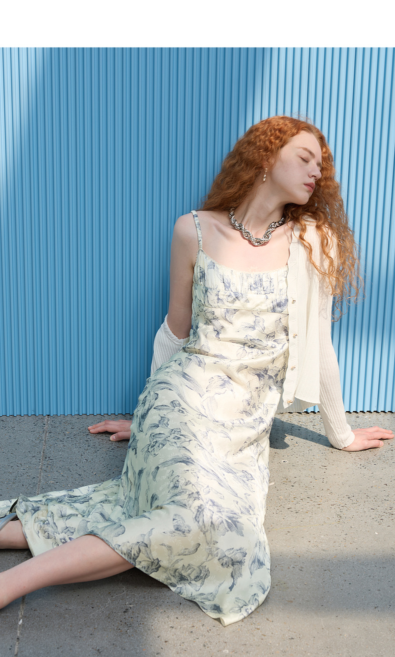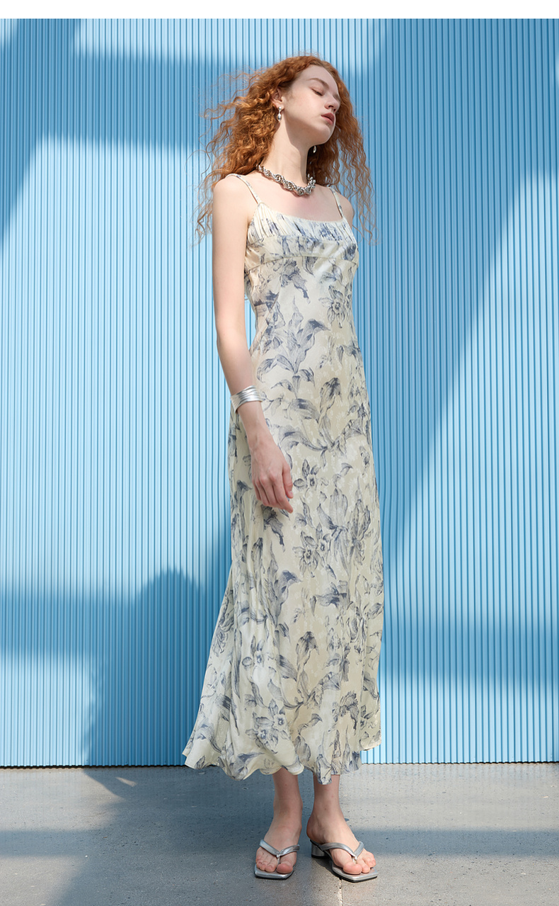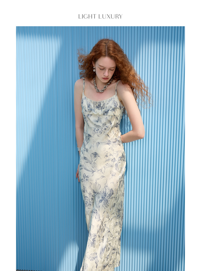 三彩2025夏季新款轻奢小苍兰碎花吊带裙连衣裙长裙气质修身S