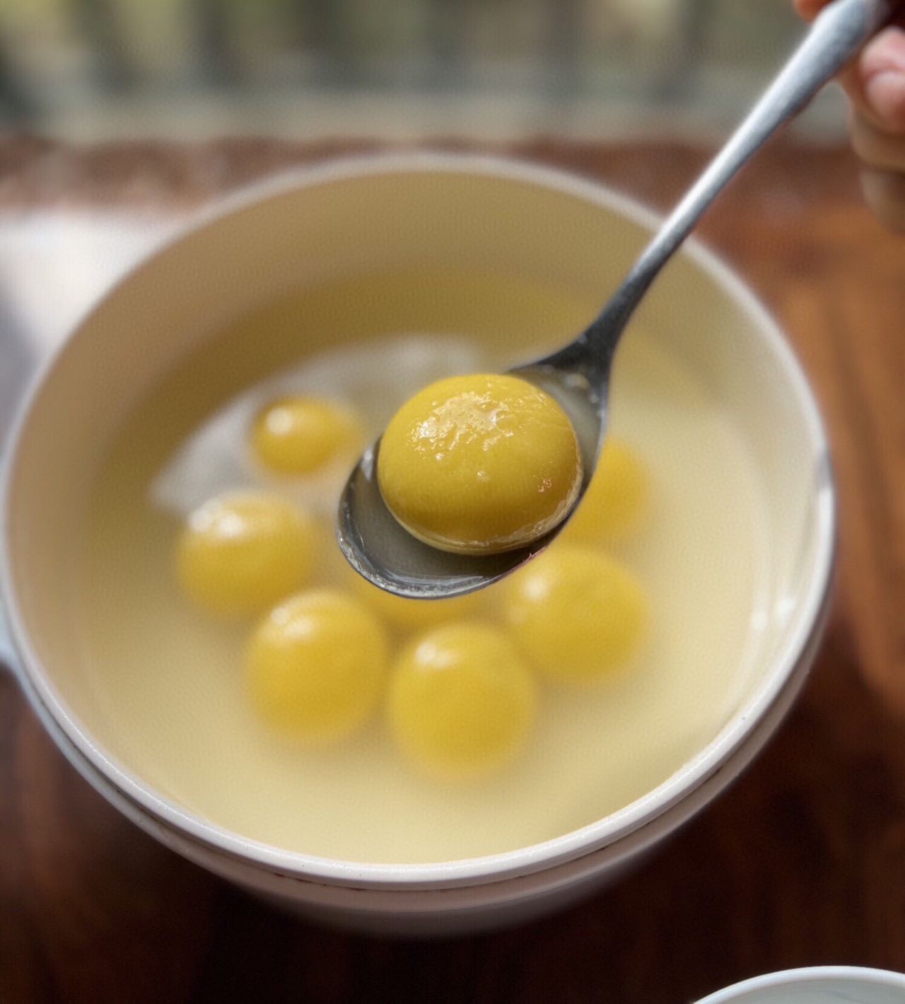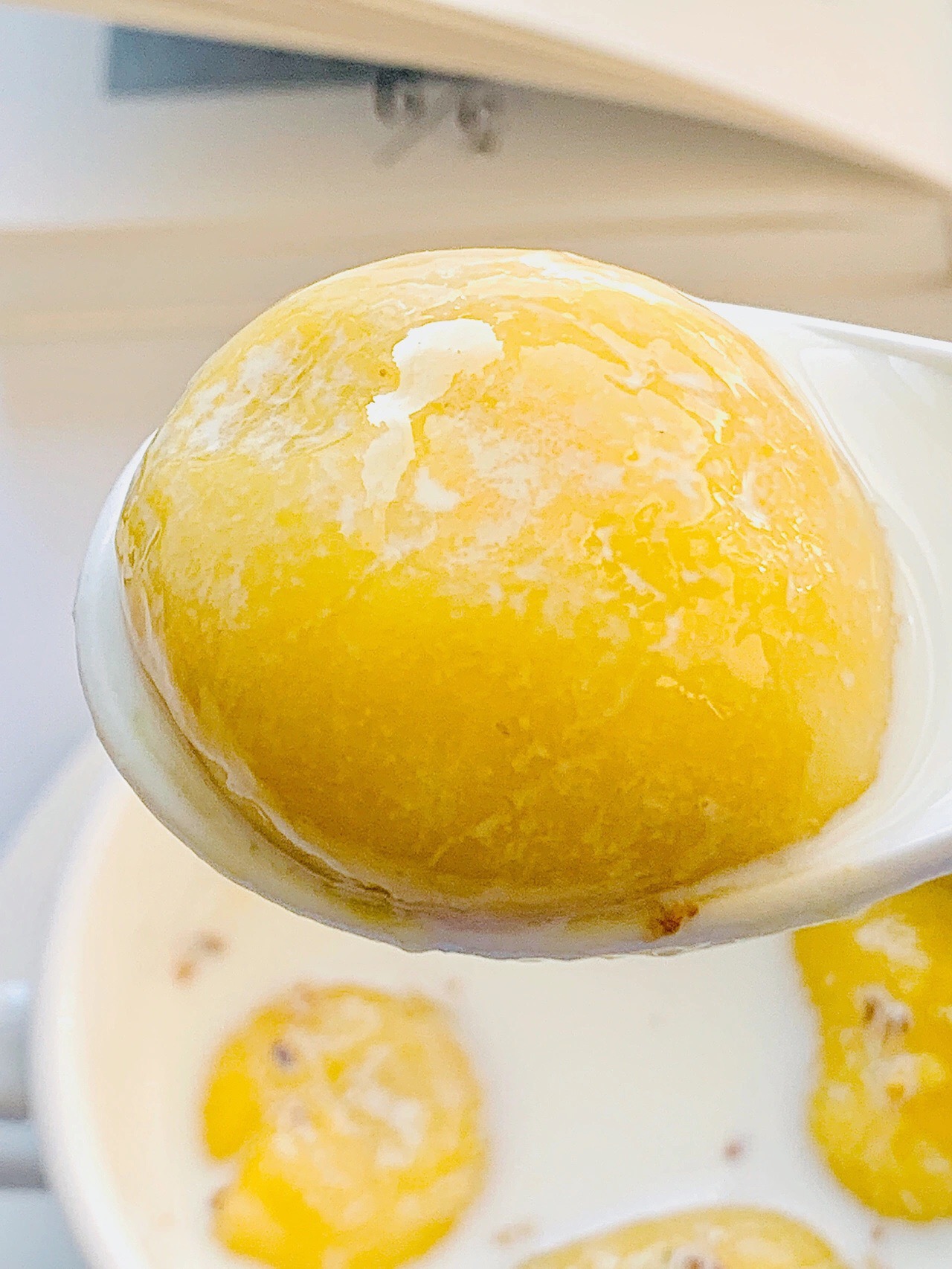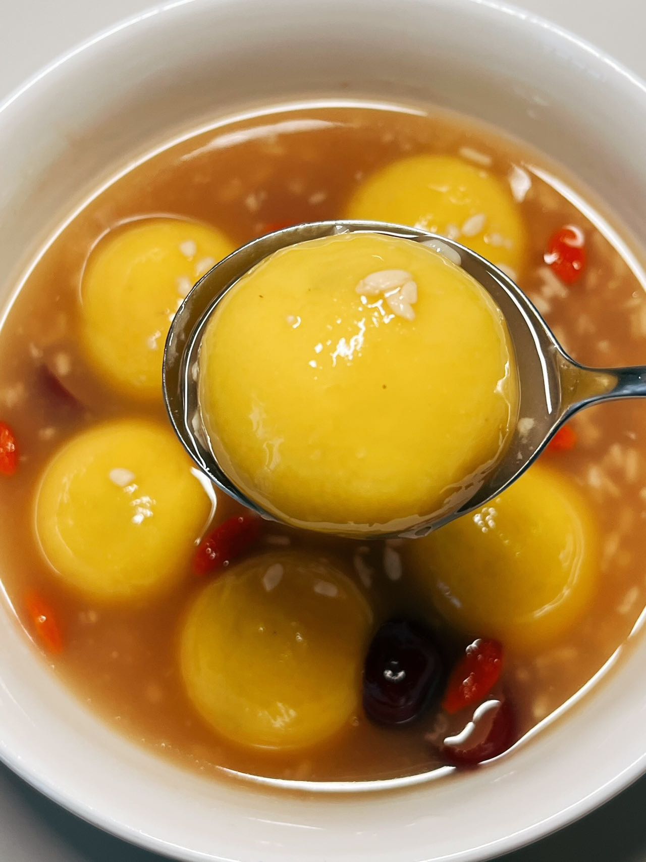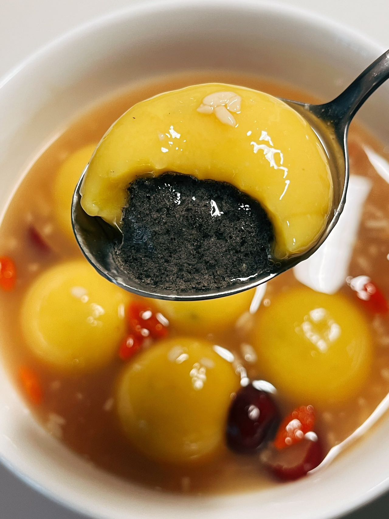 再裹入软糯的大黄米里 ,甜滑Q爽 ,味道棒极了!妥妥的汤圆界“黑马” ,原汁原味 ,香甜可口~