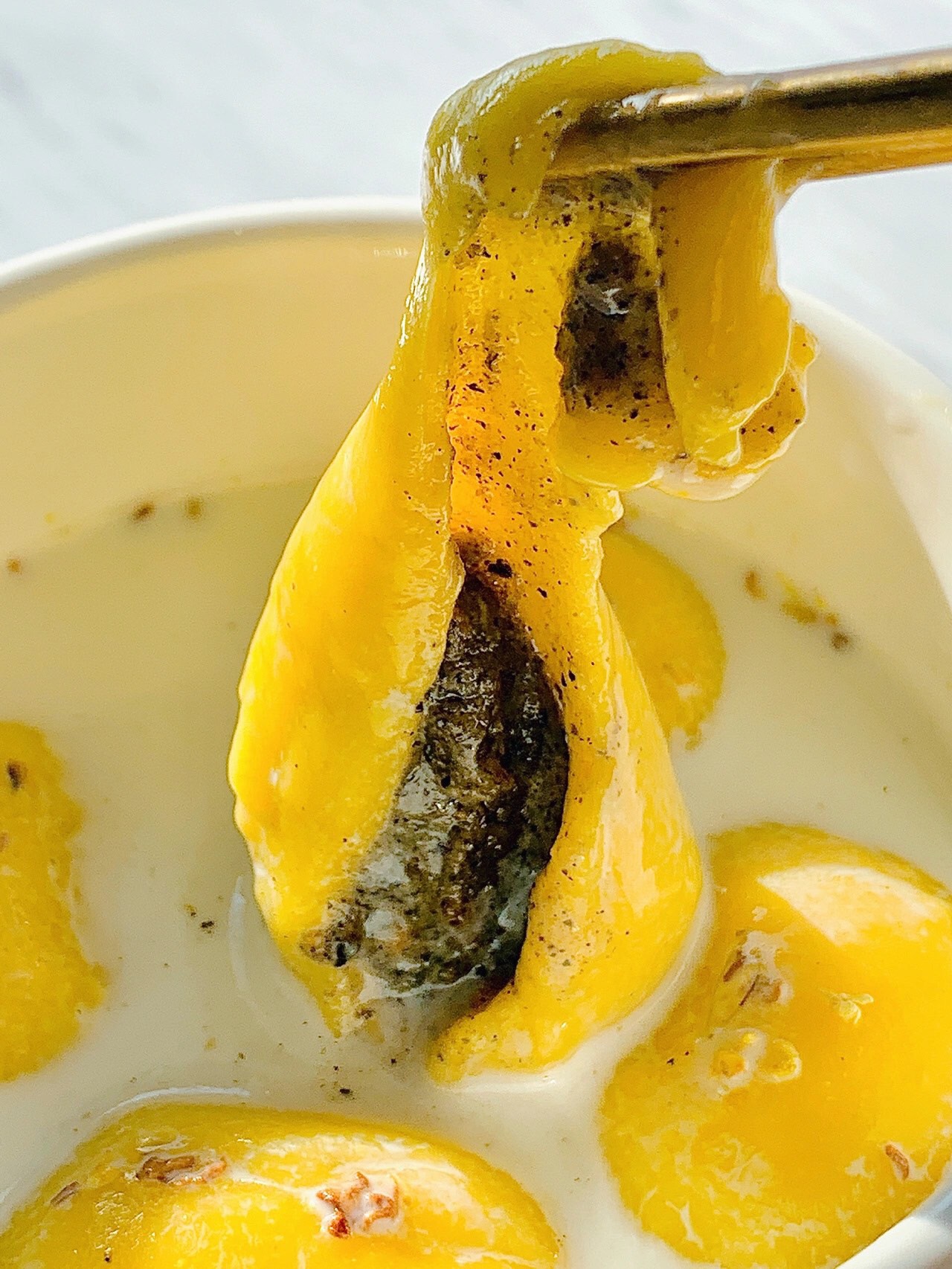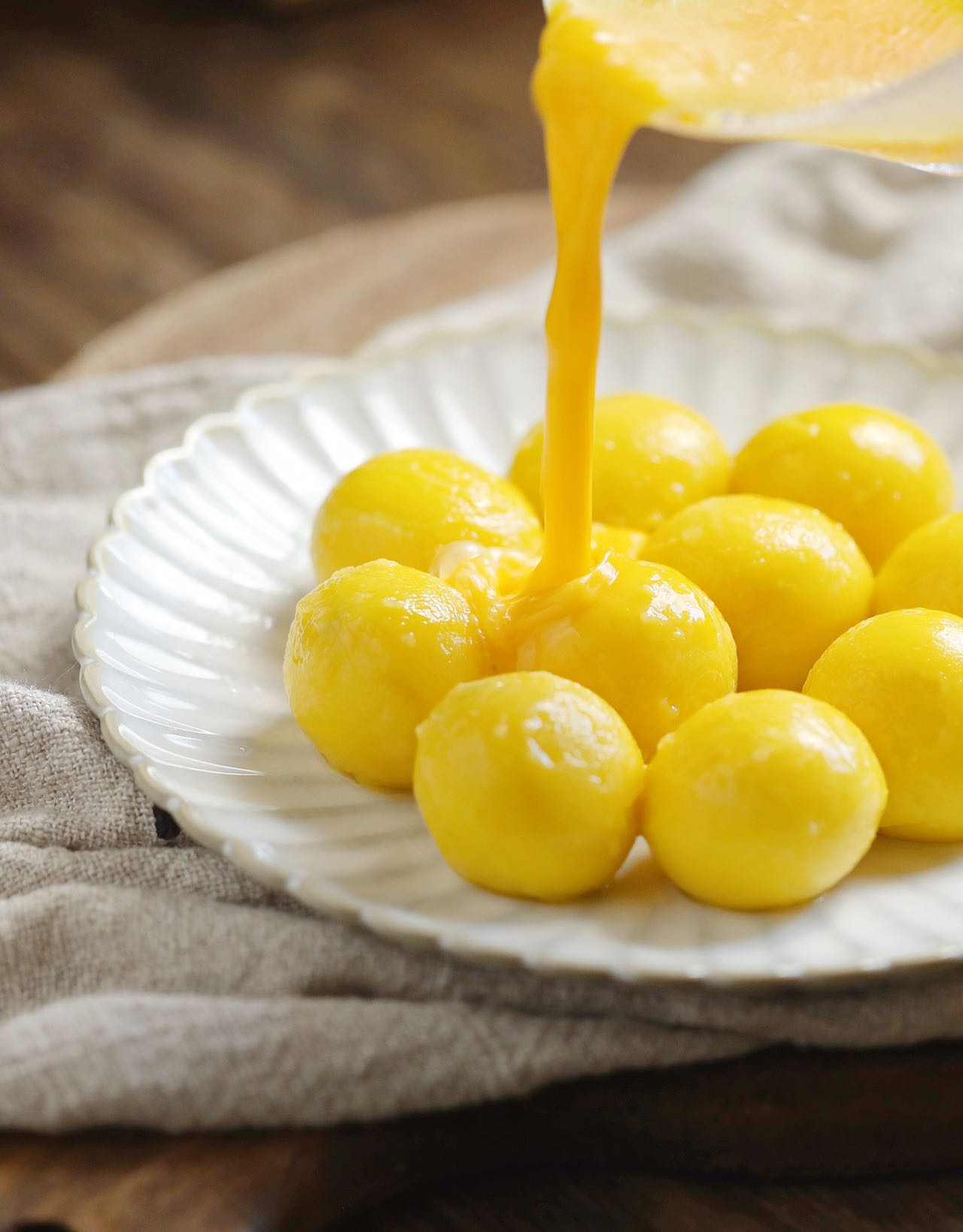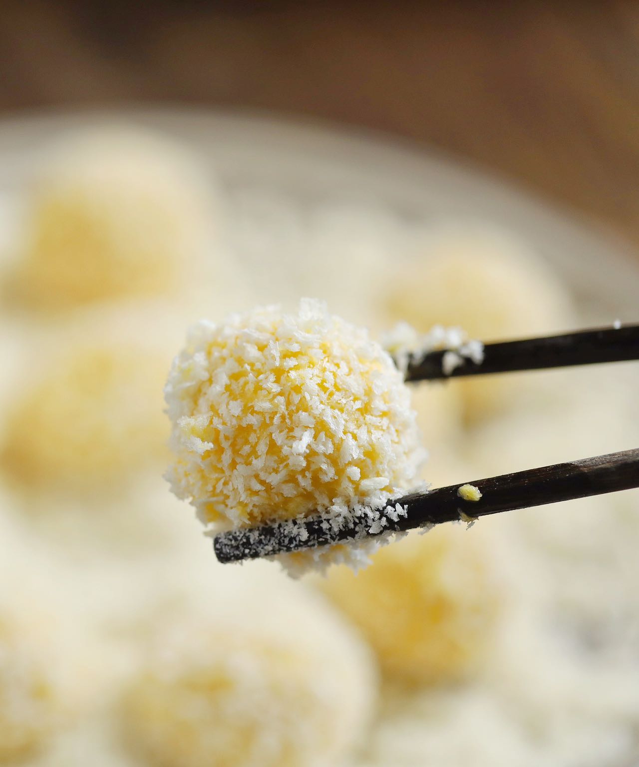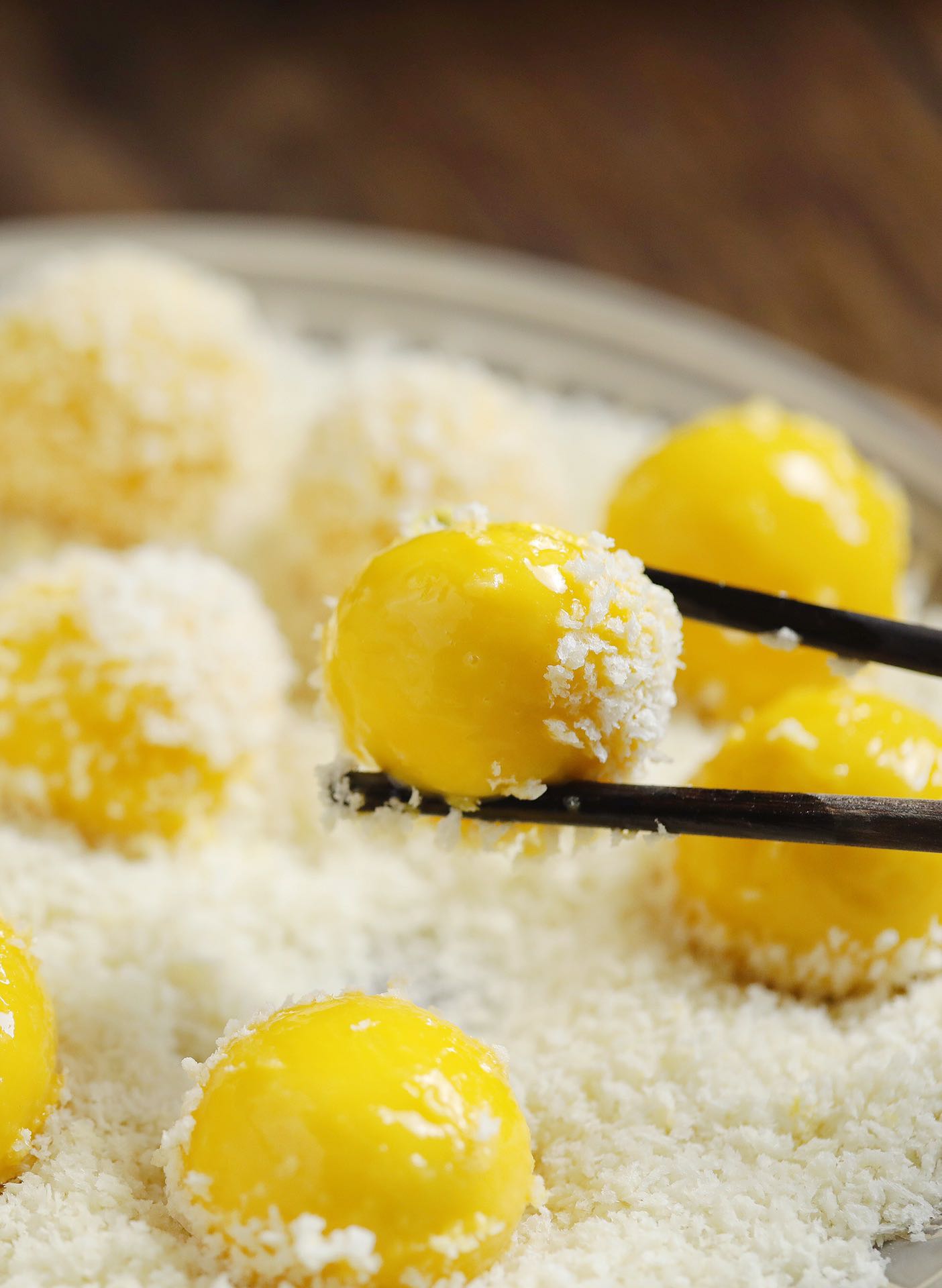 再裹入软糯的大黄米里 ,甜滑Q爽 ,味道棒极了!妥妥的汤圆界“黑马” ,原汁原味 ,香甜可口~