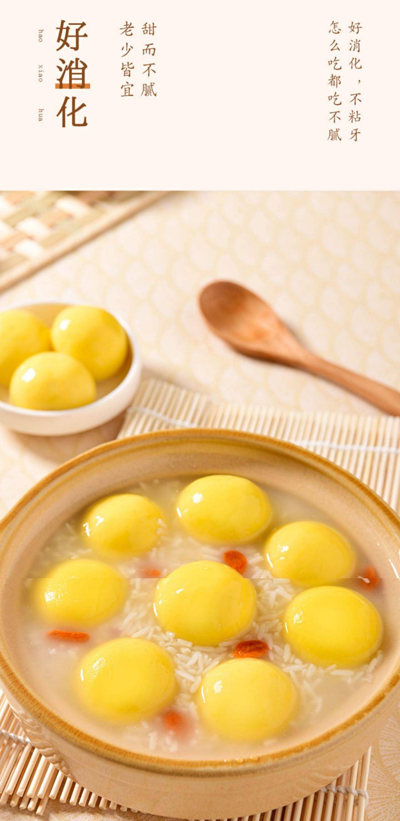 🔺好原料🔺 包汤圆用的大黄米,是从46种黄米中选出口感最佳的进行研磨,反复研究外皮的配比后才投入生产的,个顶个的细腻圆润。