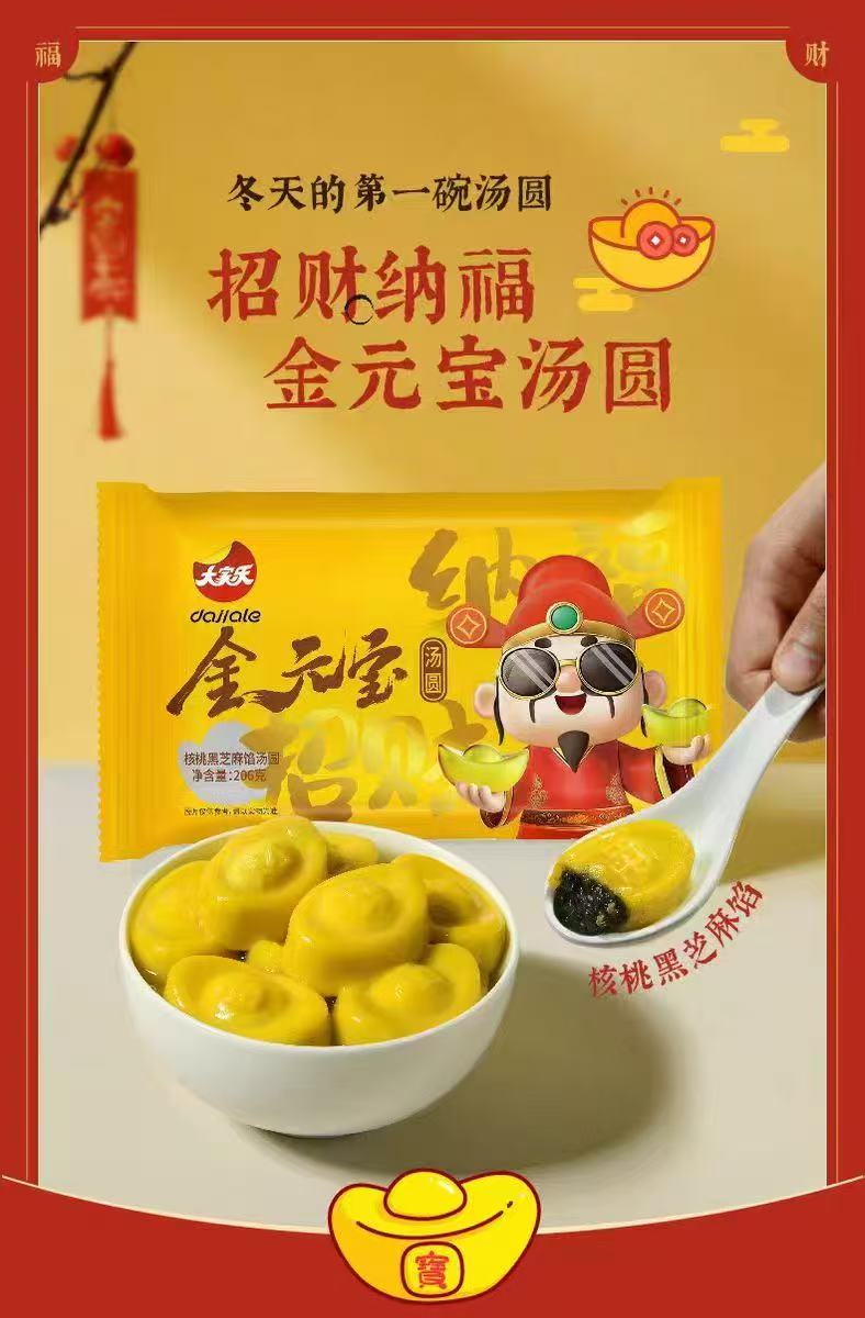 元宝发财汤圆黑芝麻核桃馅(206g/袋)