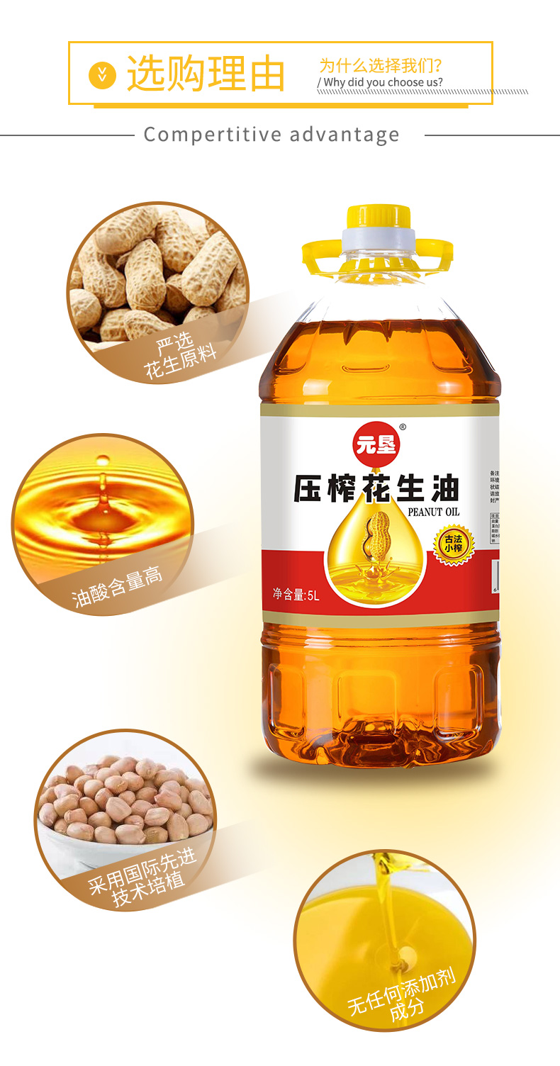 元垦醇香花生油 味道纯正 5L/桶