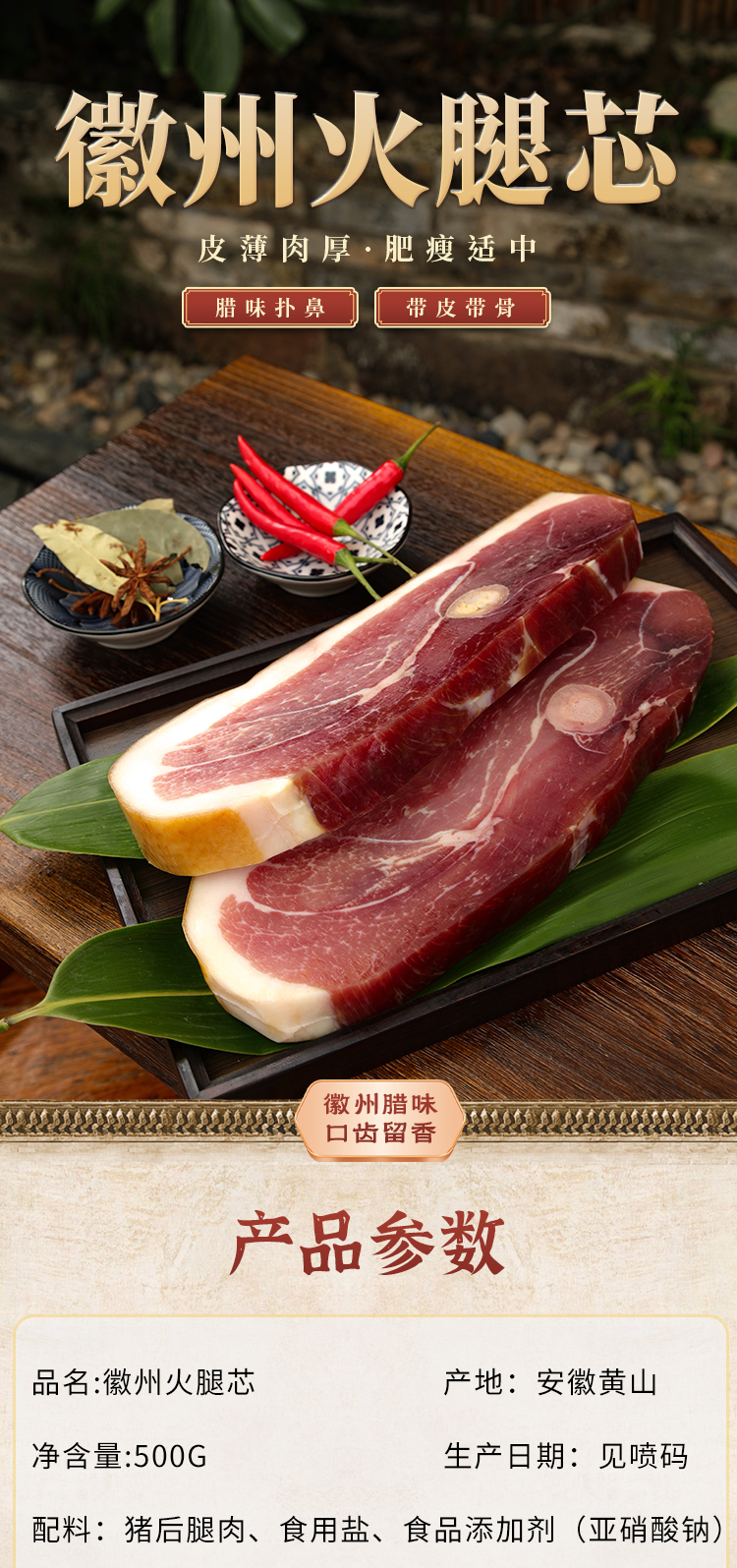 【供销优选】徽州火腿 农家腊味 土猪肉火腿心 腌制腊肉煲汤